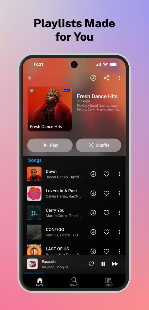 Enjoy your music without an internet connection by downloading it for offline listening. You can effortlessly manage your downloads by selecting their storage location and quality.