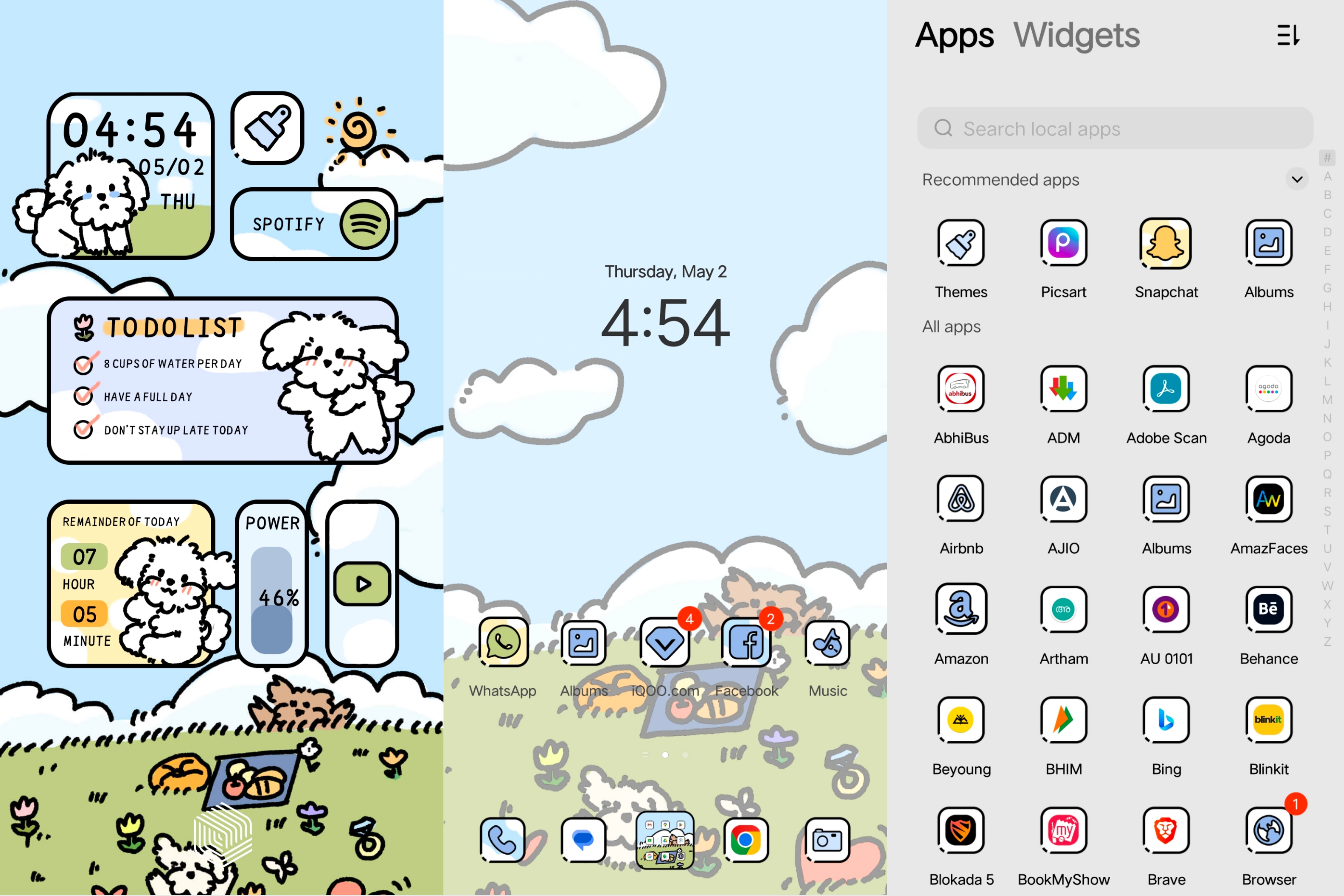 Create a playful vibe with this heartwarming theme featuring cute puppies frolicking around, and let these charming companions bring a smile to your face every time you unlock your phone. With a cool, customizable lockscreen.
