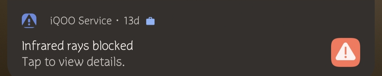My new phone (Iqoo 12) was purchased three months ago, and I've been receiving the "Infrared Rays Blocked" warning for around seven or eight times till today. Please help on this issue?@iQOO Care