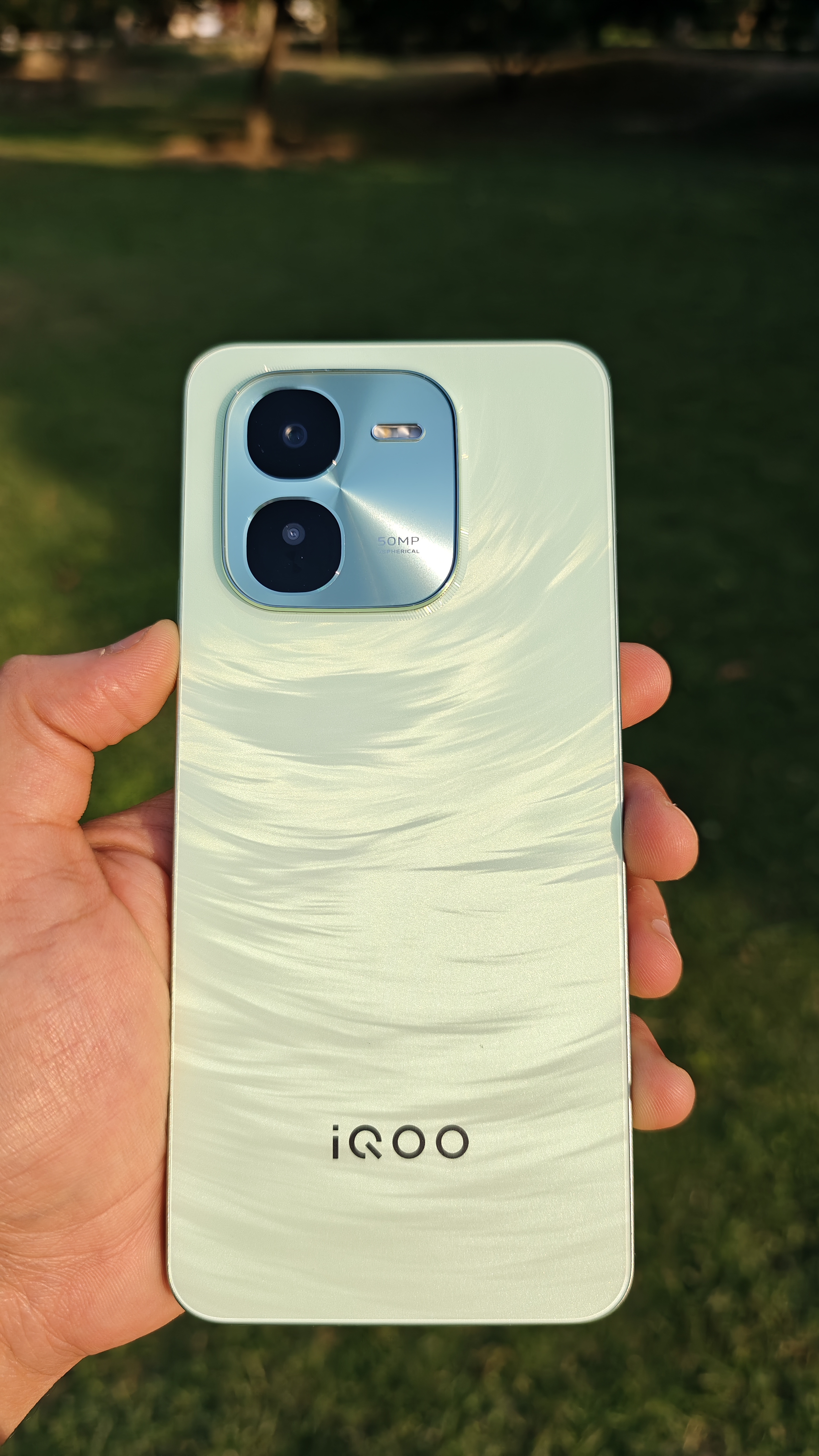 iQOO Z9x comes in two color variants: Tornado Green and Storm Grey and 3 memory variants, that are- 4GB+128GB, 6GB+128GB, 8GB+128GB. I have the Tornado Green variant, and the brushed design on the back is exceptional. It features a circular brushed pattern that creates a mesmerizing tornado effect, with different colors appearing as light hits the phone from various angles, making it look super cool.