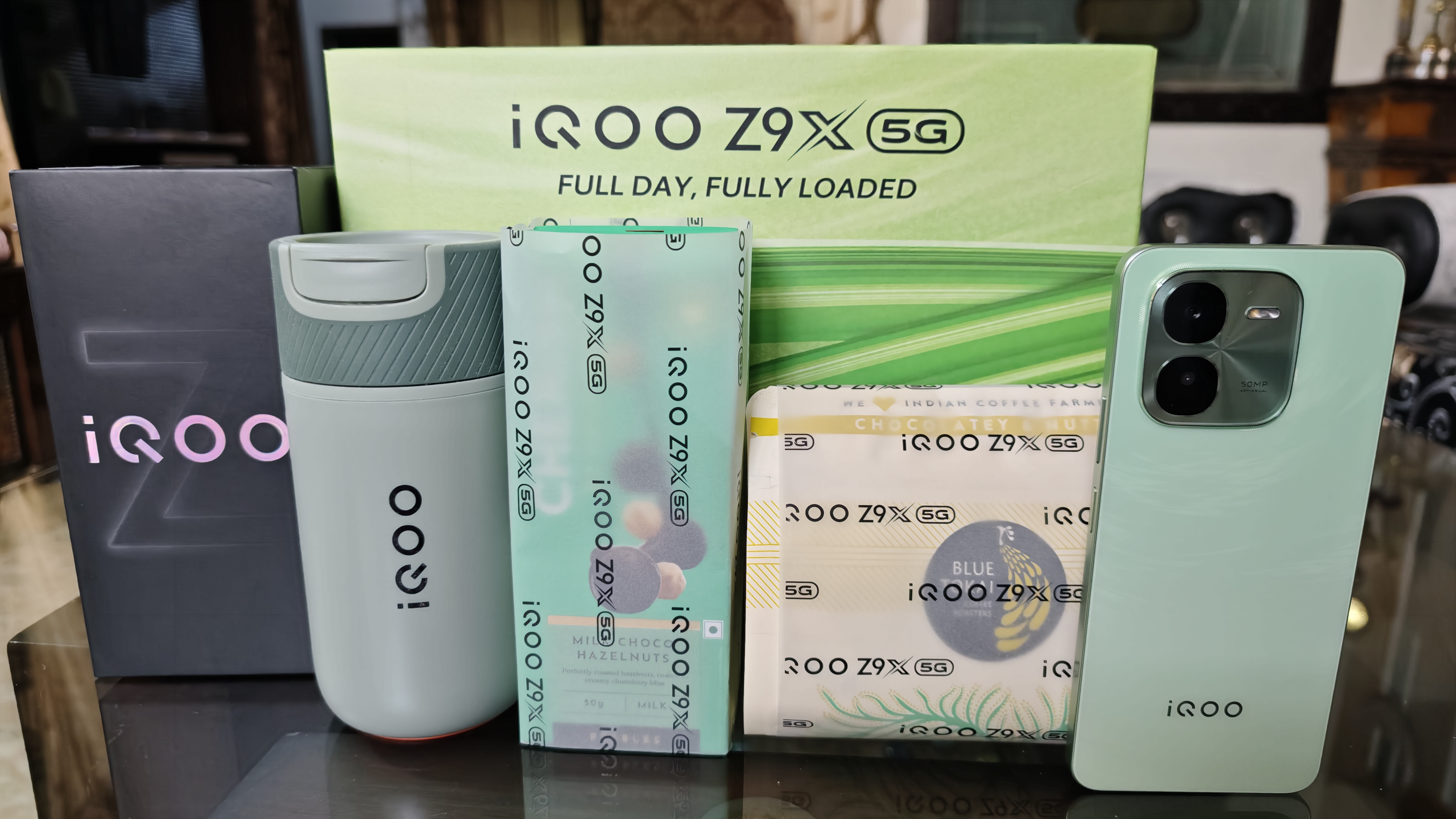 Eagerly, I opened the box and was thrilled to discover an array of thoughtful goodies inside. The standout item is a super QOOL spill-free coffee mug, accompanied by a bag of roasted coffee beans, delectable chocolates, and a specs sheet of the iQOO Z9x.