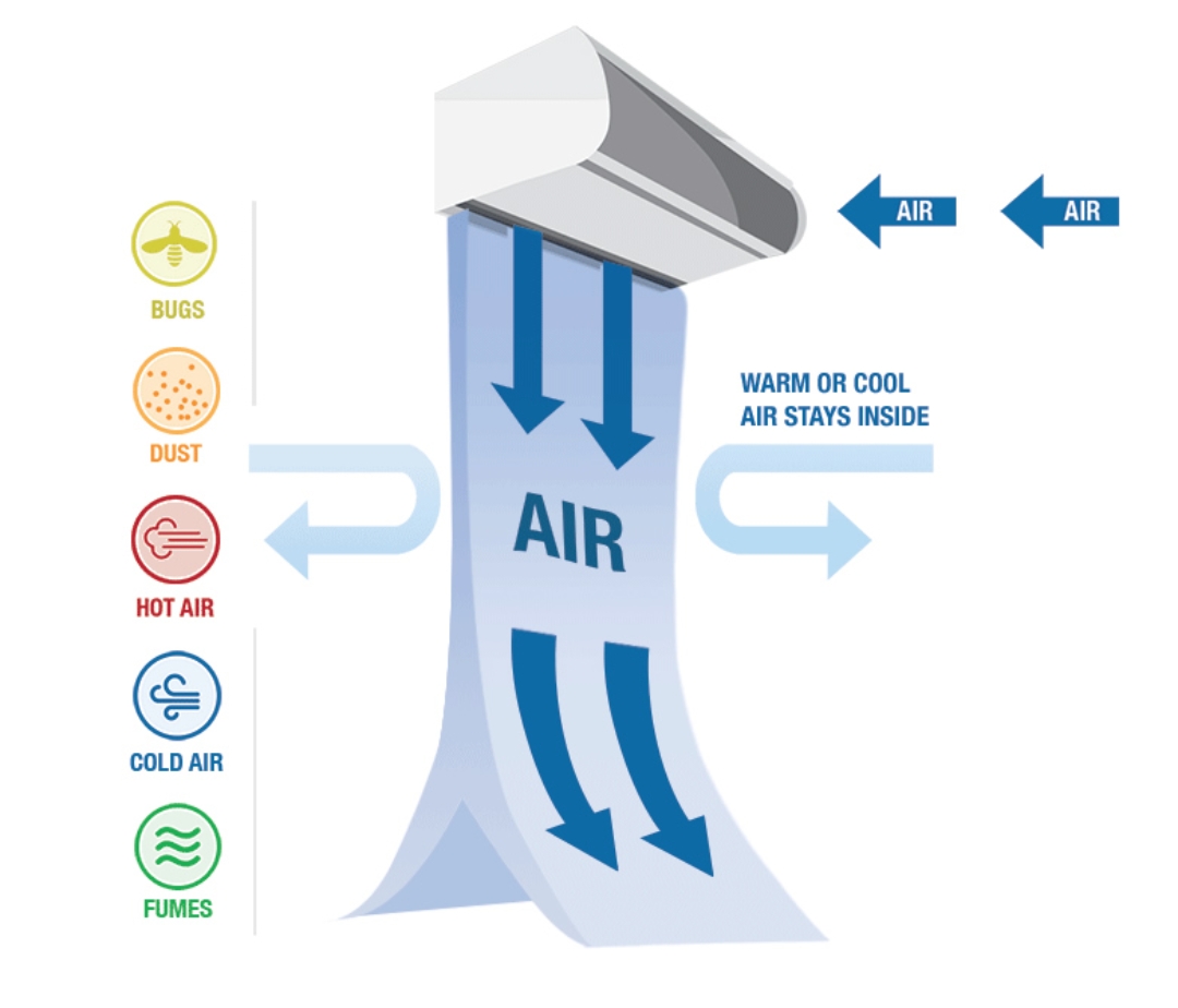 Air curtains create an invisible door that prevents the inflow of external air and restricts outflow of indoor air, protecting inside temperatures in the dining room, bar, or walk-in cooler. This results in less wear and tear of your heating or cooling system and saves you from incurring unnecessary heating bills.