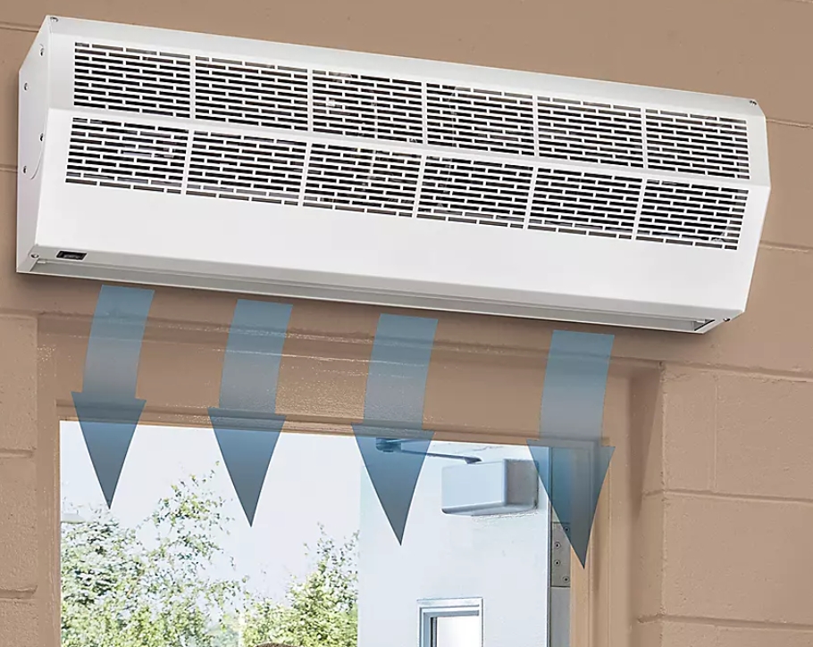 One important thing for any air curtain is choosing the correct size. The size of the air curtain should extend the entire length of the door, otherwise it will not offer full protection for the opening. Also, air curtain size affects things like weight for mounting and the size of the fan included in the air curtain. Therefore, there are several components of air curtain size that we must tailor to your building and ventilation system.
