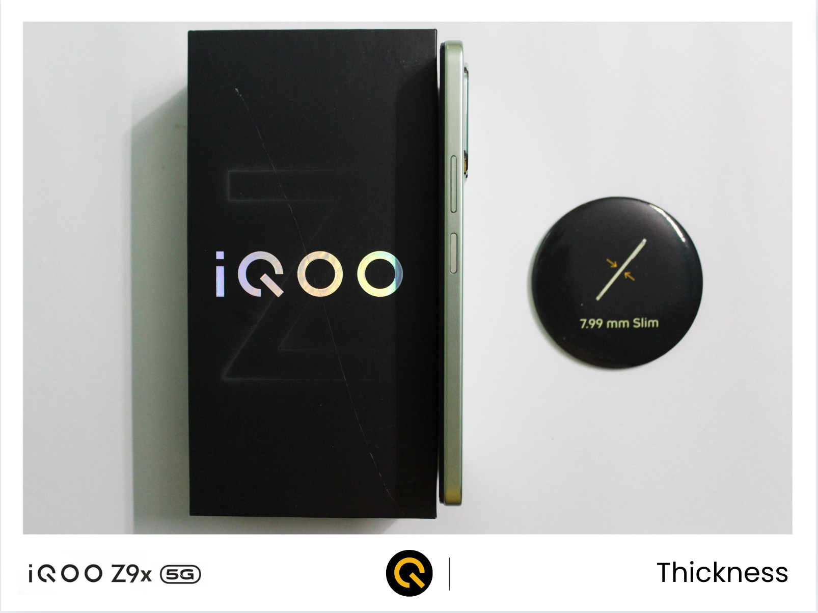 Despite having a bigger battery, the iQOO Z9x is the slimmest device in the segment, with 7.99 mm.