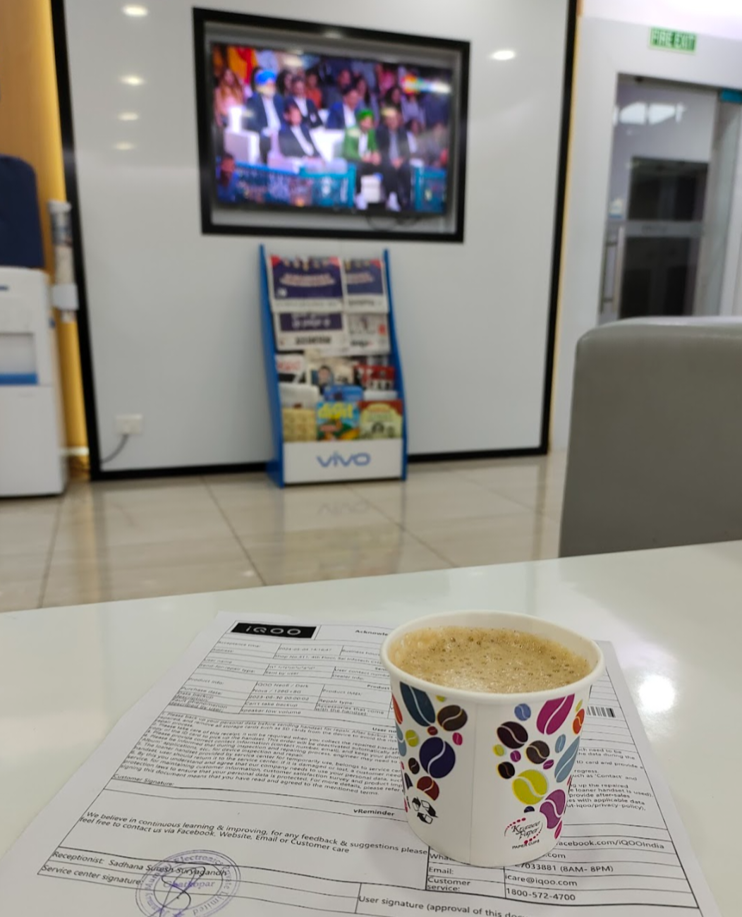 so i contact IQOO Moderator @NITIN for queries he check my problem so he suggest me to visit my near by IQOO/VIVO service. centre. So then Visited VIVO Service Center Located In Ghatkopar For Free Back Cover, Free Scratch Guard And Free Handset Cleaning of My “iQOO Neo 6”, Within 1 Hour. While I Was Sitting In The Waiting Area, One of The Receptionists Offered Me Coffee.