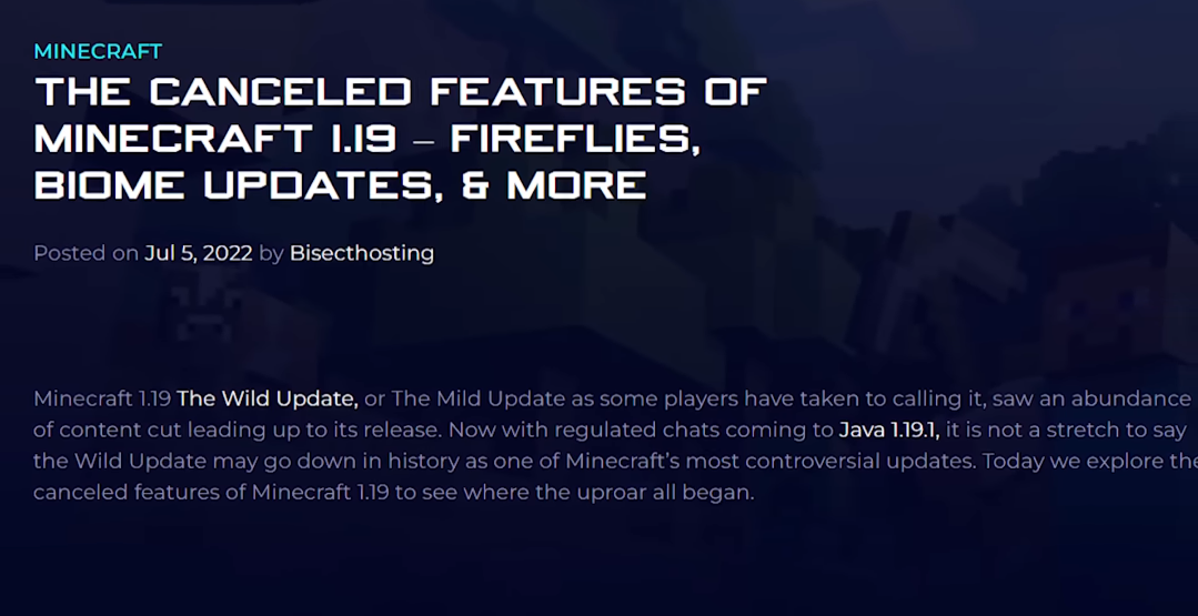 The update 1.19 was another low for Minecraft where Mojang removed features from the game and even developers explained how they are going to slow down on providing new features as they didn't want to announce something and can't deliver it on time. That statement was right call for the developers but not well received by the audience as the USP which made Minecraft super popular was going way from it. So, there's no to much hype around the new features and stuff which once excited everyone and get everyone talking what's gonna happen in Minecraft.