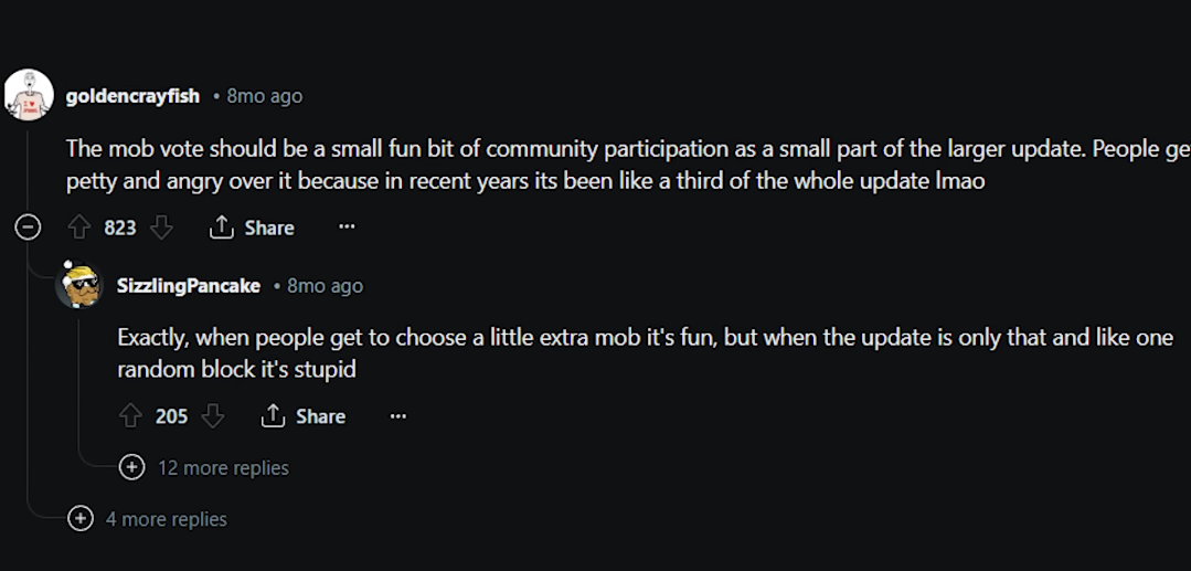 Other important thing that leads to the ultimate rise was The MOB vote where Mojang asks players what they want to see next in the game, that makes it insane and gives a feeling of being the owner or developer of the game itself.
