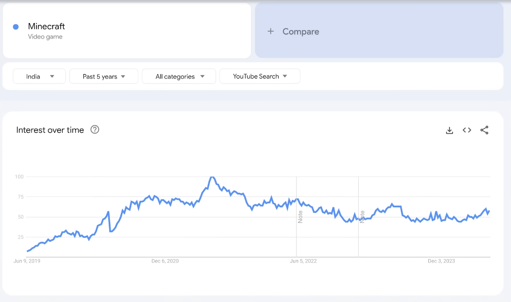 Well, if you consider all the points and hype mentioned above there is no such hype like before, the main reason being leaving the game by Creators, all the big creators are leaving the game which ultimately lead to the loss in audience interest and new gamers also shifted towards other games, leaving Minecraft behind. We can witness the trend records, where it is clearly visible that the game was super popular during lockdown times and now it's popularity is somewhat decreasing.