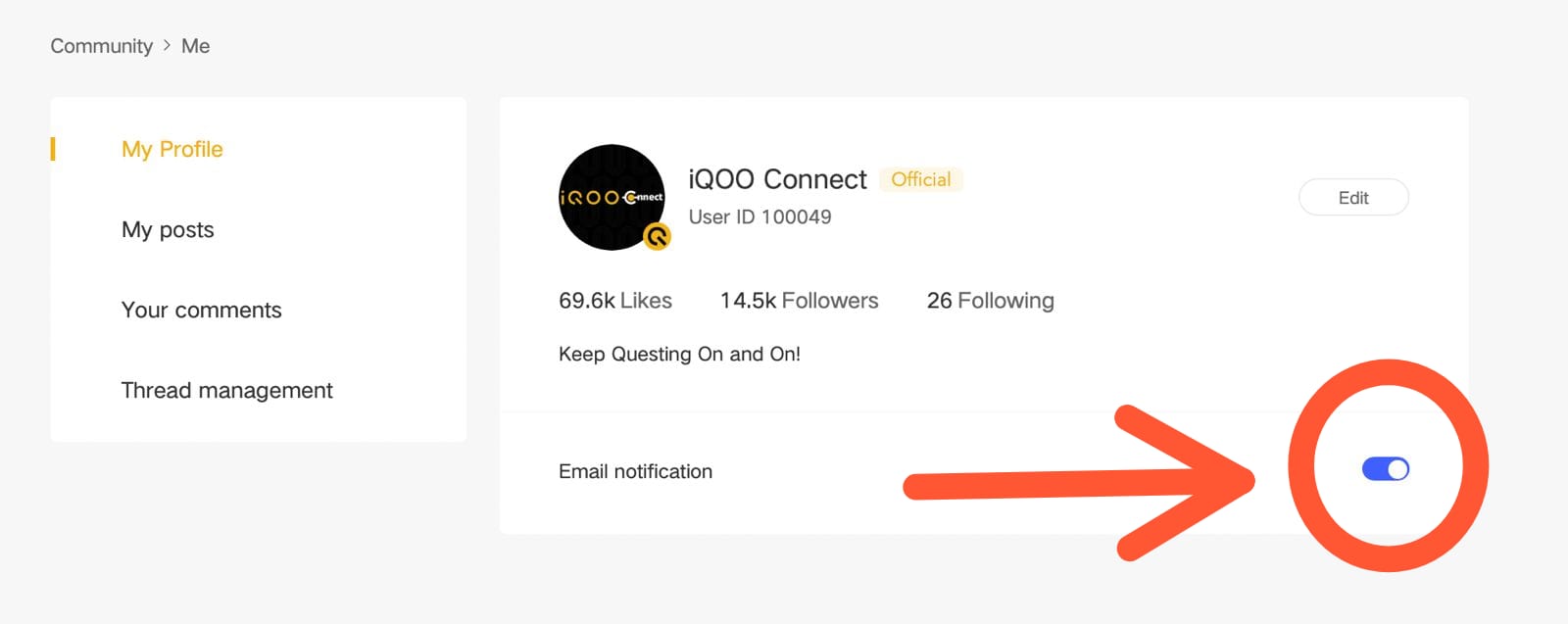 Switch On your email notification on iQOO Connect and become the first to know about iQOO Newsletter, community news and events, tips, tricks, and gaming secrets. Not just that, you will also get exclusive updates from iQOO! Isn't that just amazing? 🤩