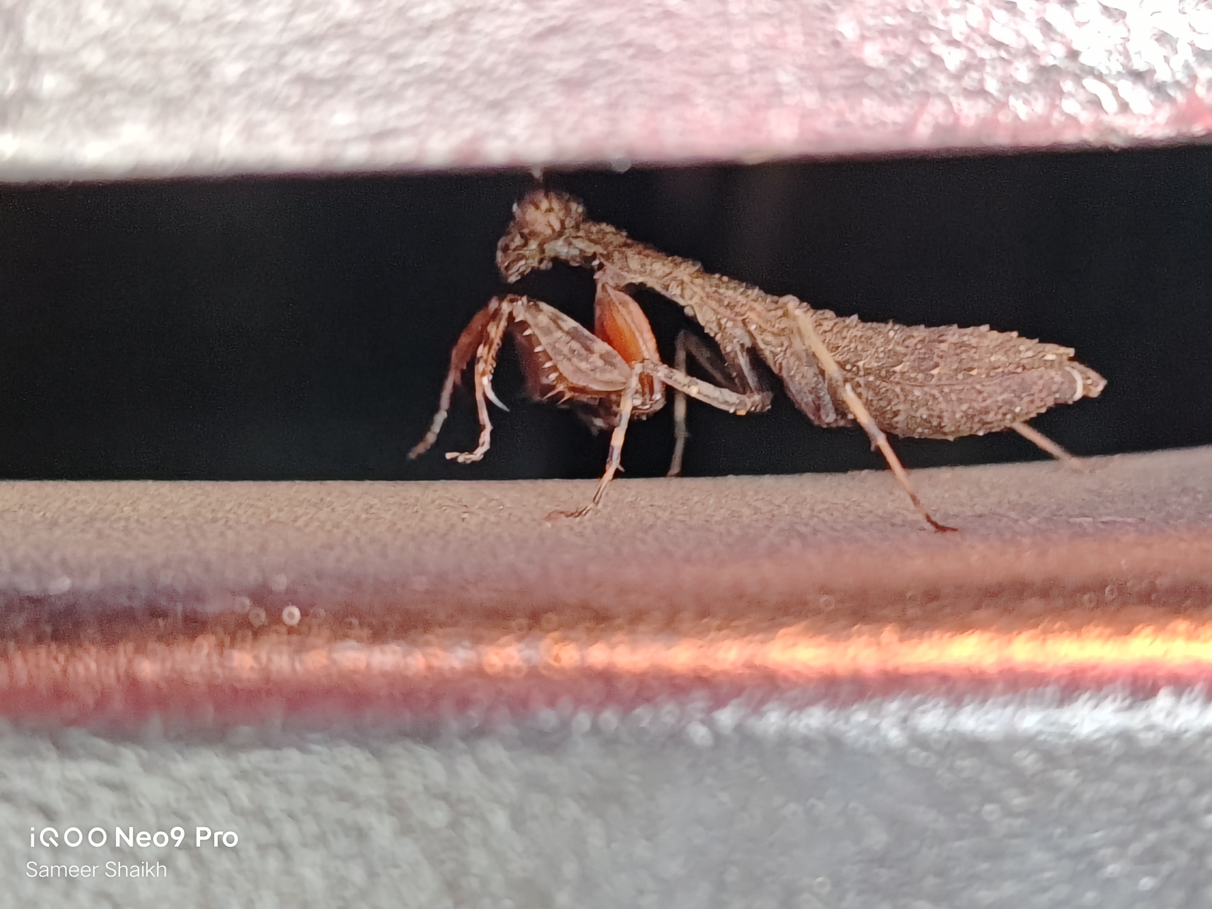 Mantises are an order (Mantodea) of insects that contains over 2,400 species in about 460 genera in 33 families. The largest family is the Mantidae ("mantids"). Mantises are distributed worldwide in temperate and tropical habitats. They have triangular heads with bulging eyes supported on flexible necks. Their elongated bodies may or may not have wings, but all Mantodea have forelegs that are greatly enlarged and adapted for catching and gripping prey; their upright posture, while remaining stationary with forearms folded, has led to the common name praying mantis.