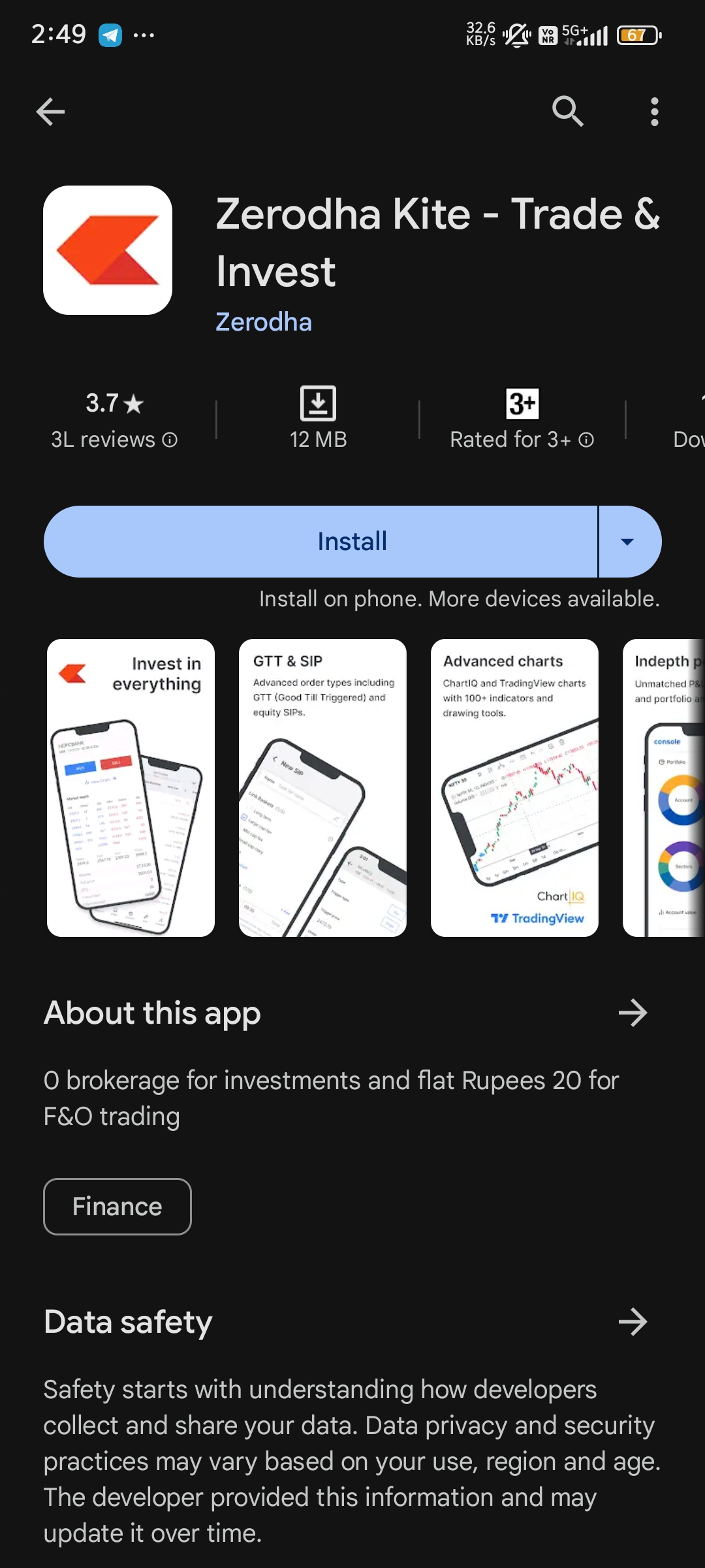 Zerodha charges a flat brokerage fee of ₹20 per trade, regardless of the value of the trade.