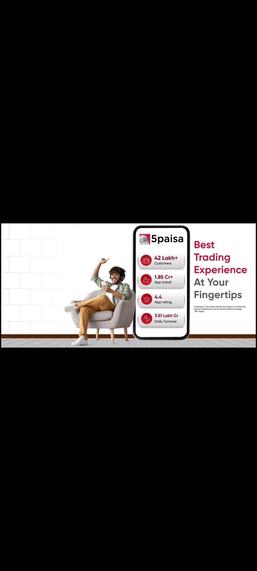 5paisa charges a flat brokerage fee of ₹10 per trade, regardless of the value of the trade.