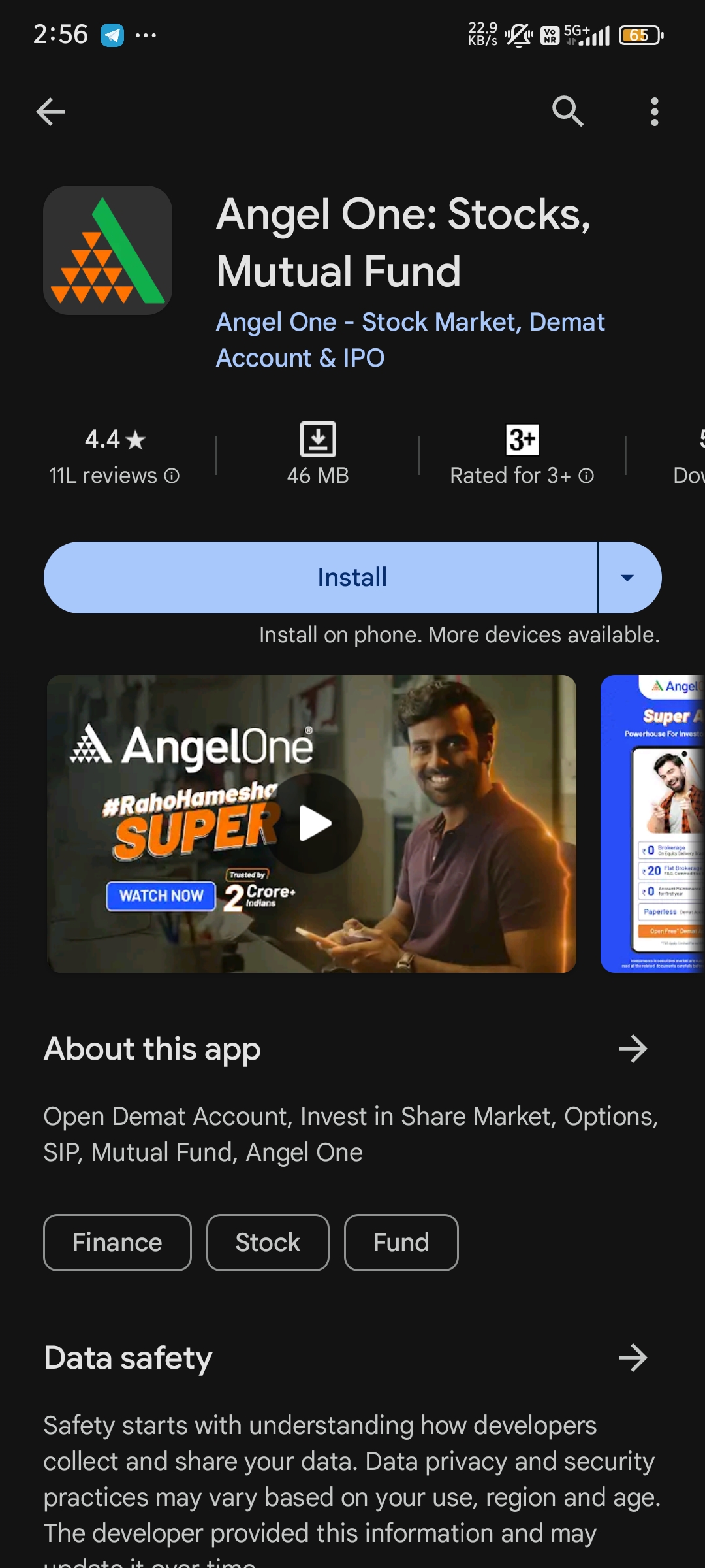 Angel One charges a flat brokerage fee of ₹20 per trade, regardless of the value of the trade