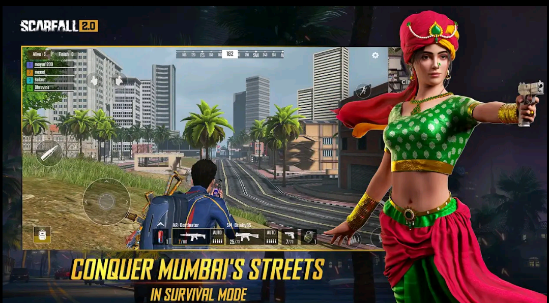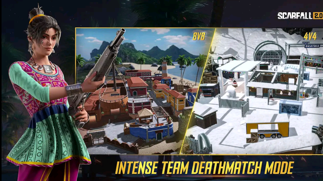 ScarFall 2.0, Made in India & Made for India, Multiplayer Battle Royale & TDM Game that offers a realistic battleground experience by challenging your survival skills. Play in Solo, Duo, or Squad and fight to become the last man standing. Land on battleground and loot the weapons, supplies, build strategies, show courage and teamwork to win the match.
