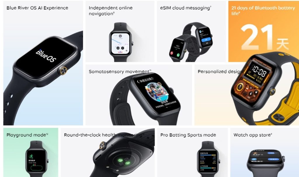 Additionally, the watch features a lightweight design, AI capabilities such as a smart window, a watch face workshop, and a rotating crown for easier navigation. With eSIM enabled, it promises up to 9 days of battery life, and with just Bluetooth, it offers up to 21 days of battery life.