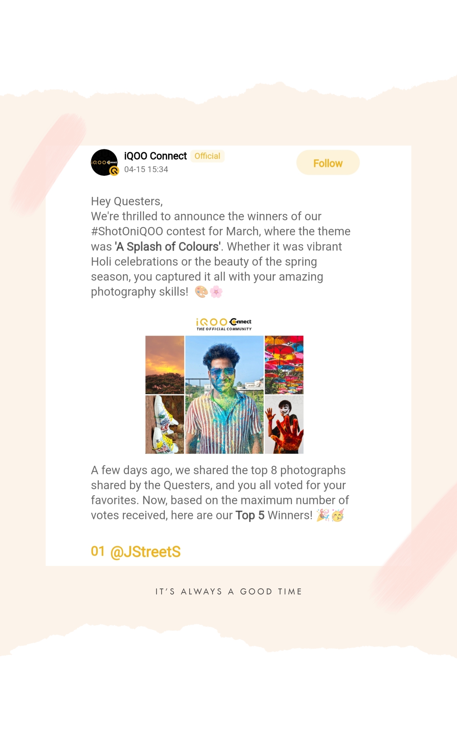 Participating in community events and contest like ShotOnIQOO Splash of colours edition