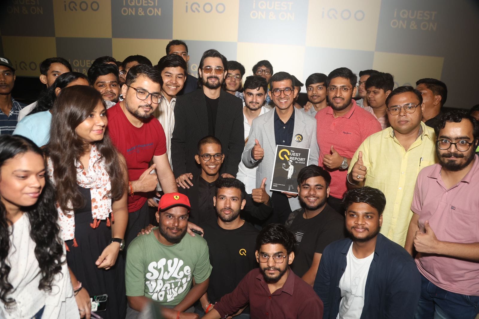 The event concluded with a group photo with Bhuvan Bam, and his fans eagerly took selfies with him. Following Bhuvan's departure, we were treated to a sneak peek of the iQOO Z9s Pro, allowing the Questers to get hands-on experience with the upcoming device. The day ended with a quick group photo, and as we exited the theatre, the iQOO team handed us some fantastic iQOO goodies.