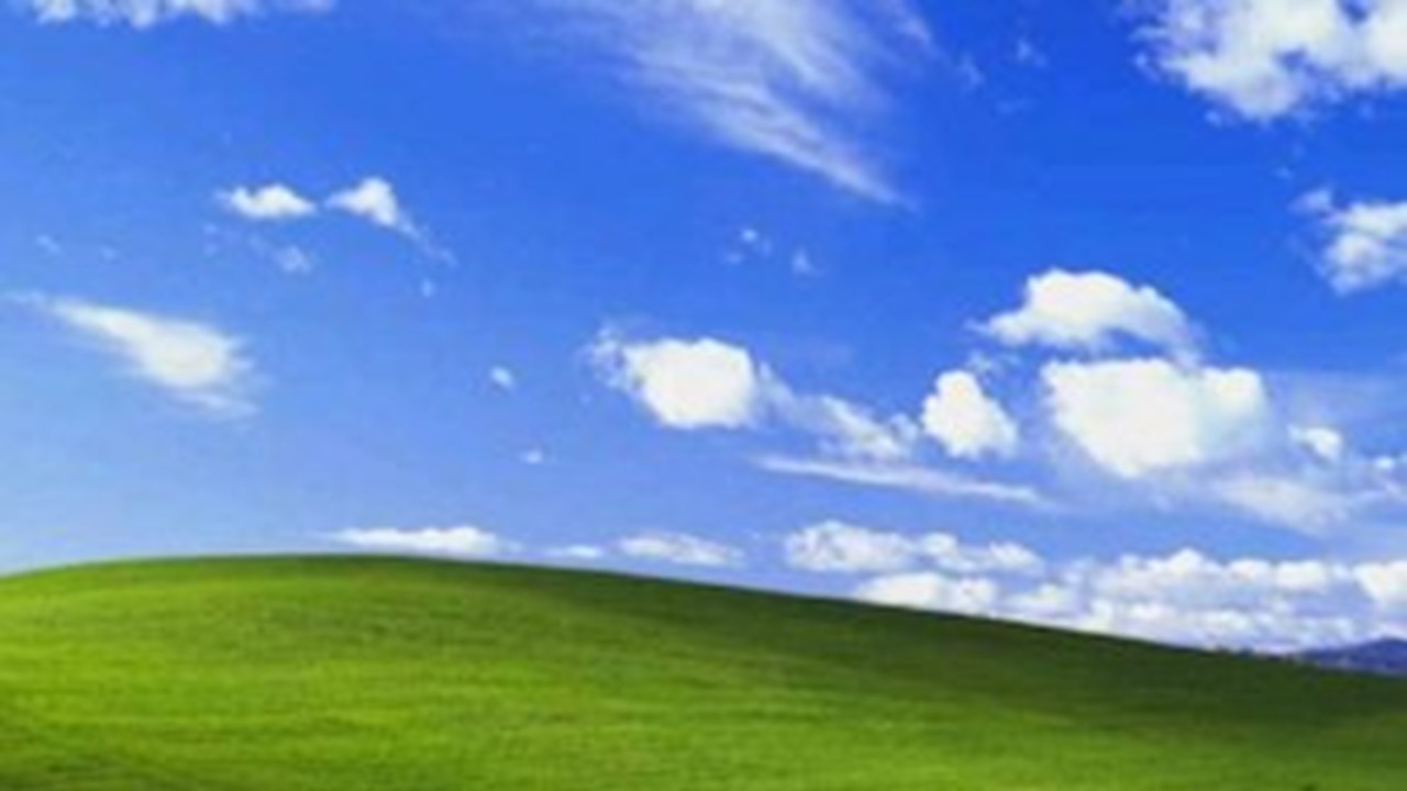 Known as "Bliss," involves photographer Charles O'Rear. In 1996, O'Rear took the photograph in Sonoma County, California, using a medium-format camera. The image features a rolling green hill under a blue sky with scattered clouds.