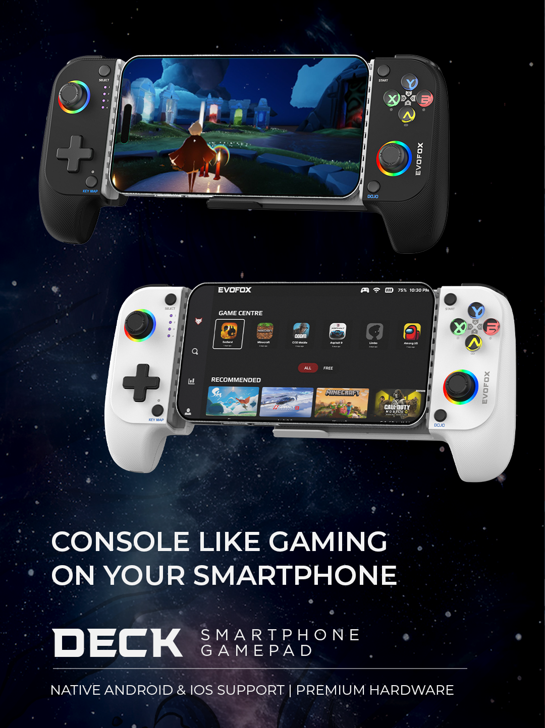 The EvoFox Deck is a sliding controller that lets you slot your phone into it, emulating the look and feel of a traditional handheld console like the Nintendo Switch. The device features a large, flexible plate in the middle allowing it to stretch to fit most phones without any issues. The flexible part of the controller is designed to be more rigid, securely locking the phone in place, while the rubberised finish adds extra protection. This makes the EvoFox Deck solid and stable when folded.