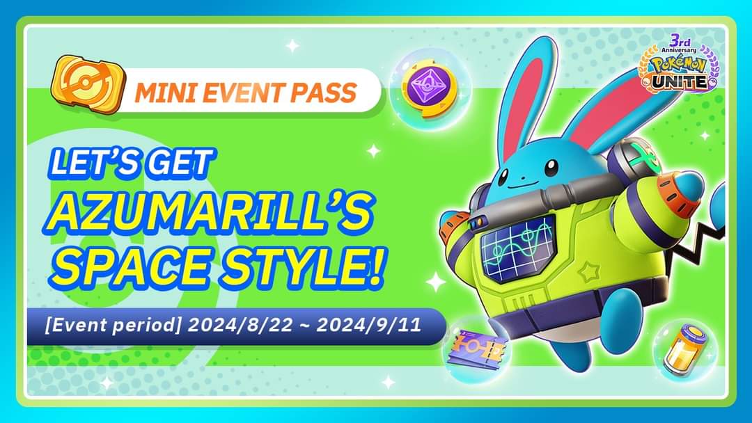 To mark its arrival, we’ve launched a Mini Event Pass! Purchase the premium pass, complete missions, and get Azumarill's stellar new holowear for your collection!