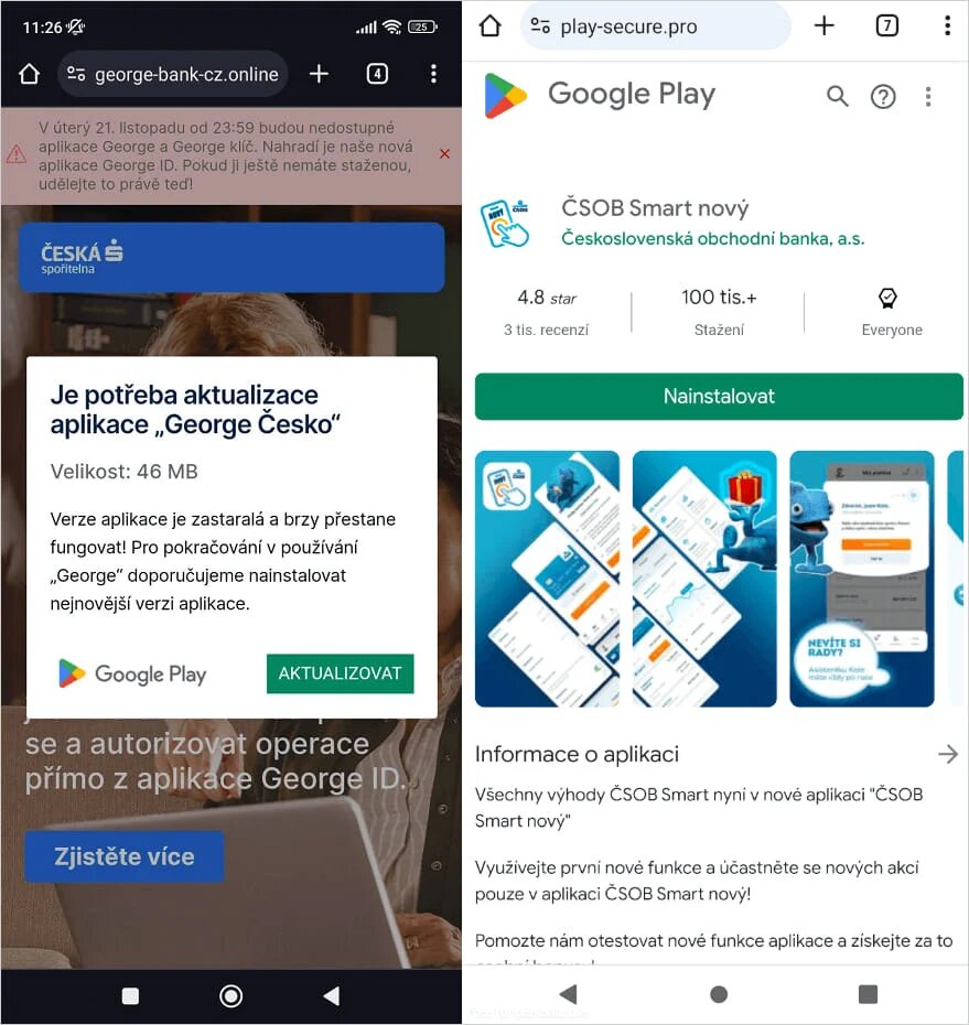 The campaign has been active since November 2023 and is linked to a recent report from ESET on the increased use of progressive web apps (PWAs) and advanced WebAPKs to steal banking credentials from users in the Czechia.