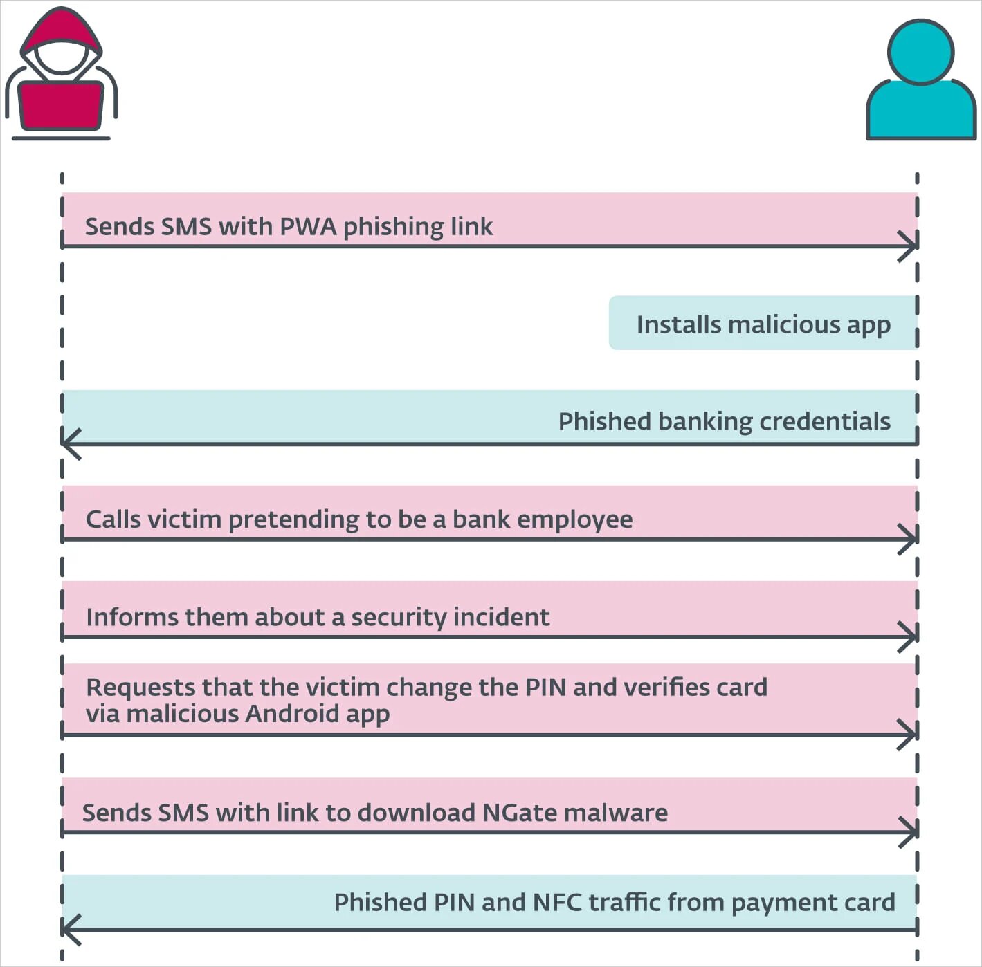 Once the phishing step is done via the WebAPK, the victim is tricked into also installing NGate via a subsequent step in the second attack phase.