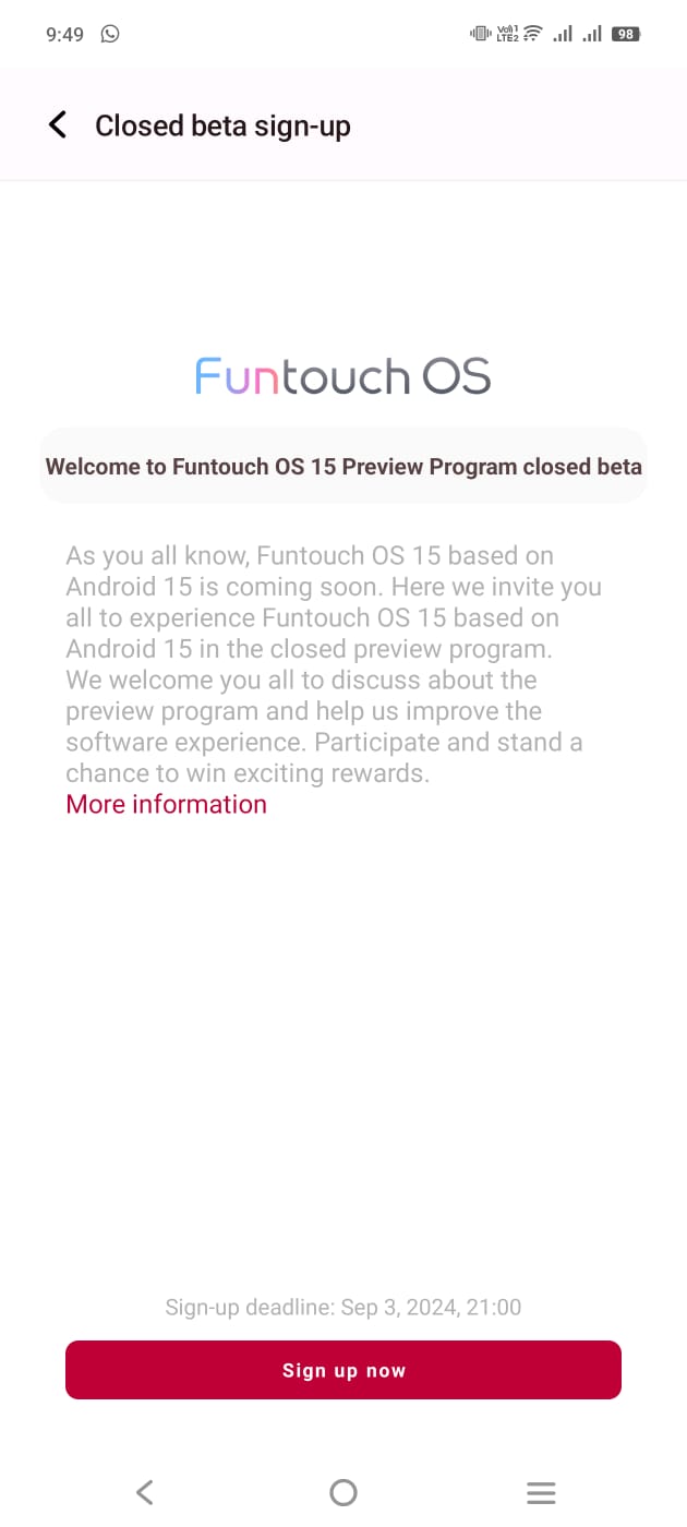 We are thrilled to announce an exclusive opportunity for iQOO 12 users to participate in our Funtouch OS 15 trial program.