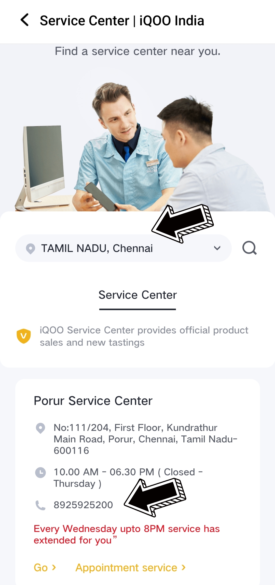 All service centers have dedicated counters for iQOO and premium smartphone users. Just share your concern with the representative, who will create a ticket and address your inquiry.