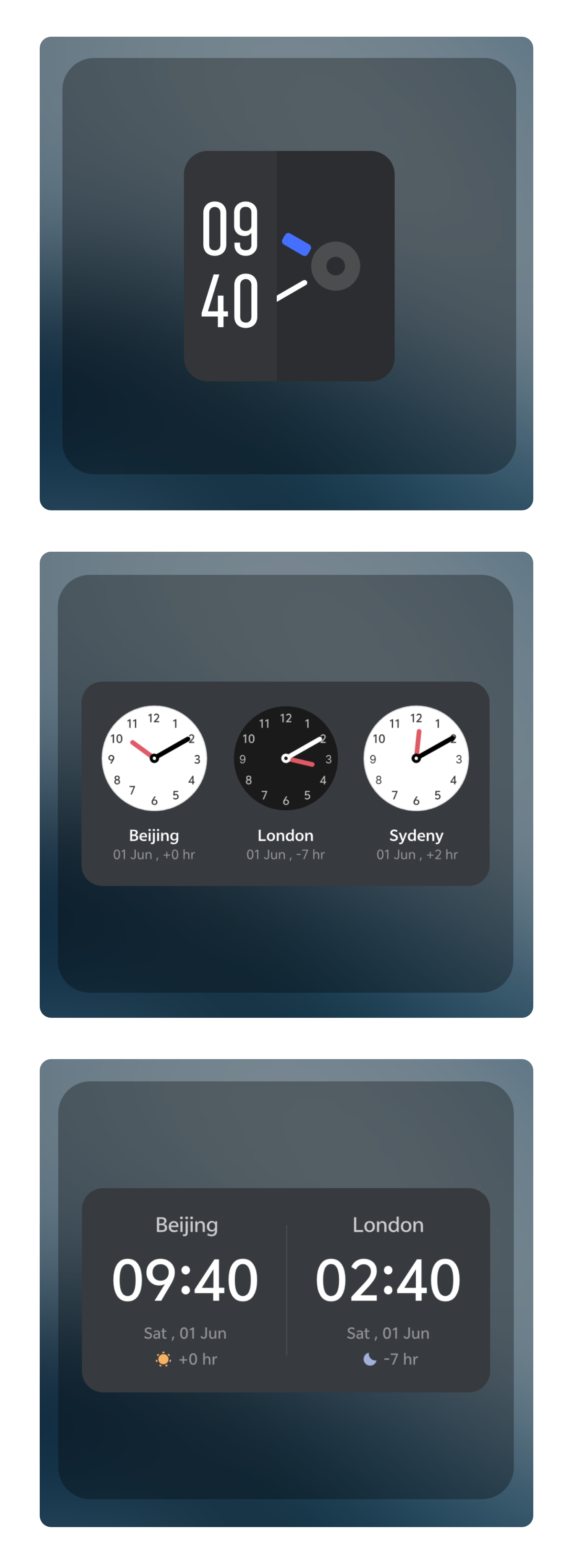 3 new Clock widgets are introduced which includes, Origin OS clock and 2 World clocks.