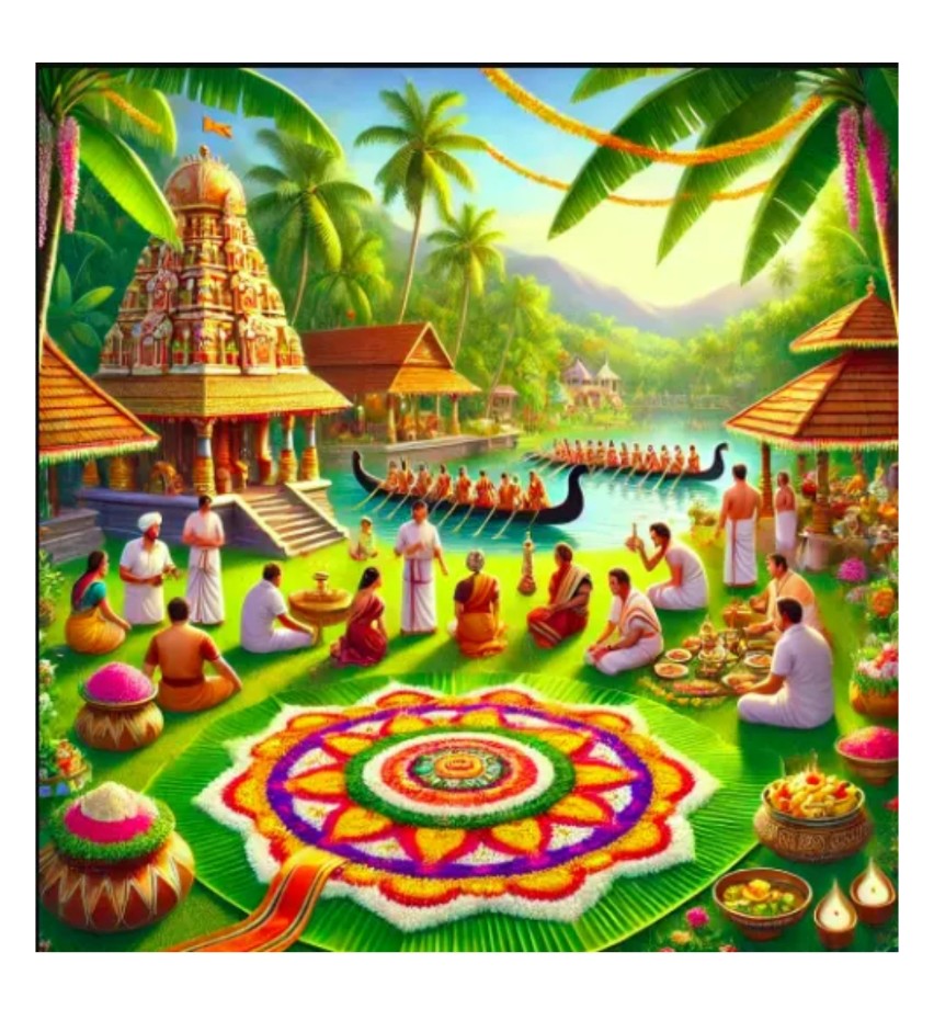 Onam is a major annual festival celebrated in the Indian state of Kerala, typically during the Malayalam month of Chingam (August-September). It is a harvest festival and marks the homecoming of the legendary King Mahabali, under whose reign Kerala is believed to have prospered. The festival lasts for ten days, with Thiruvonam being the most important day.