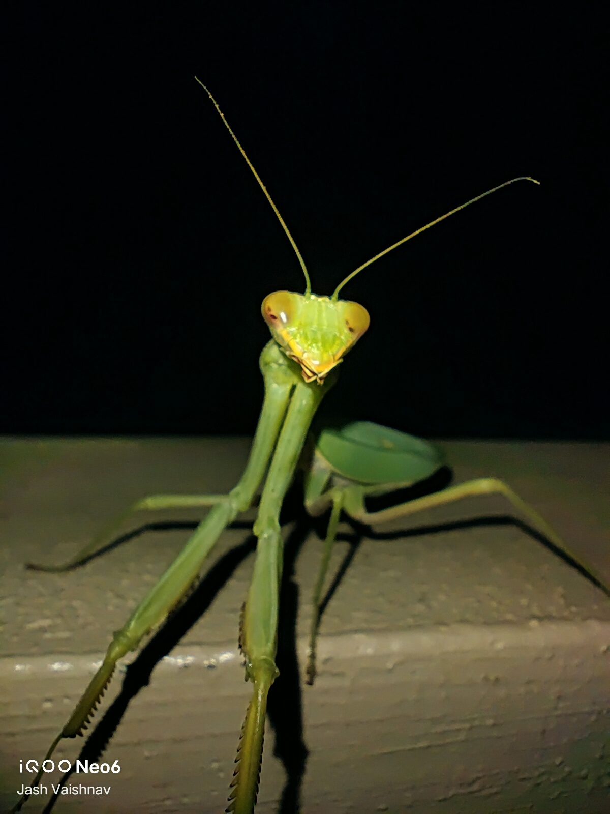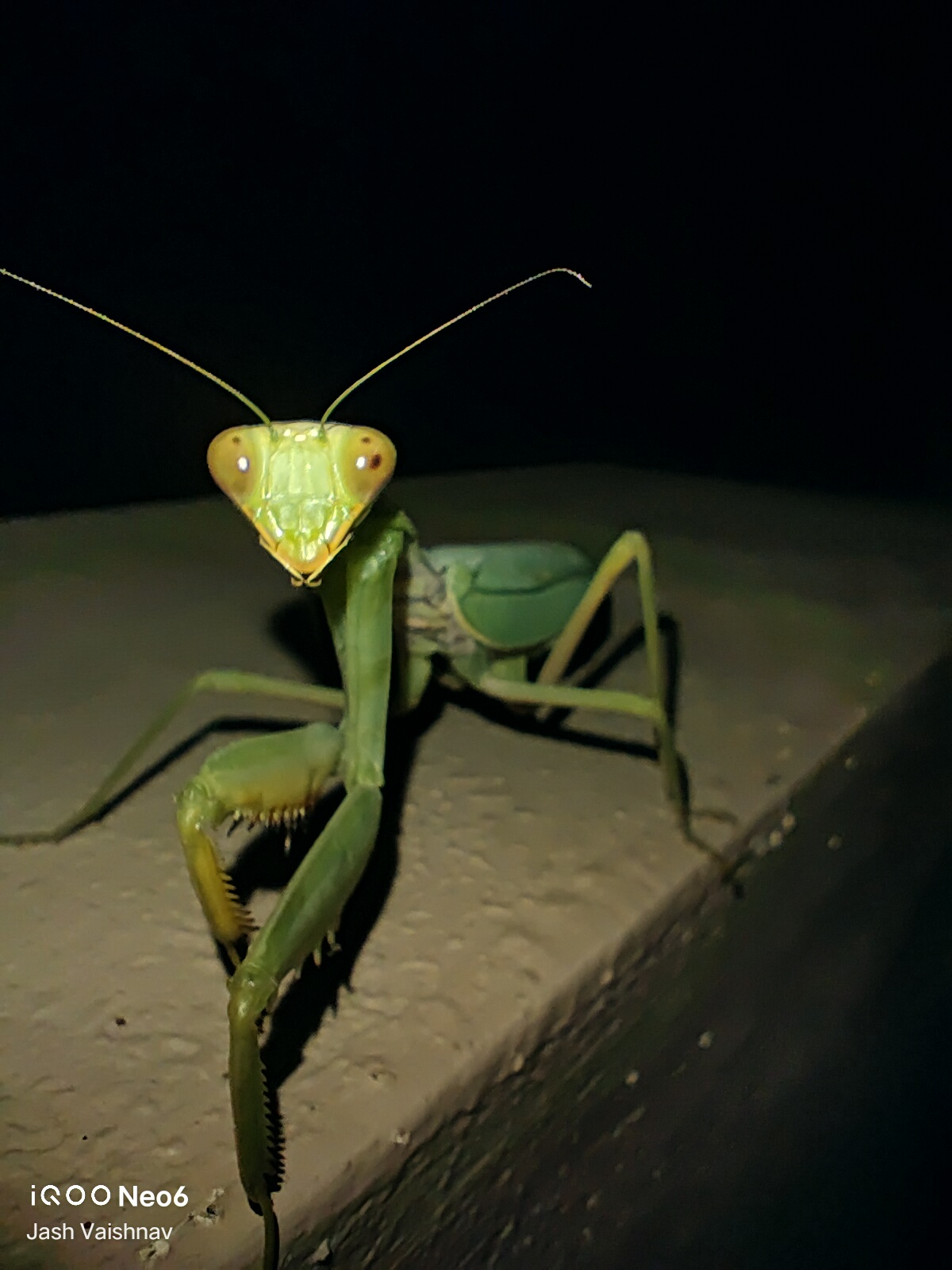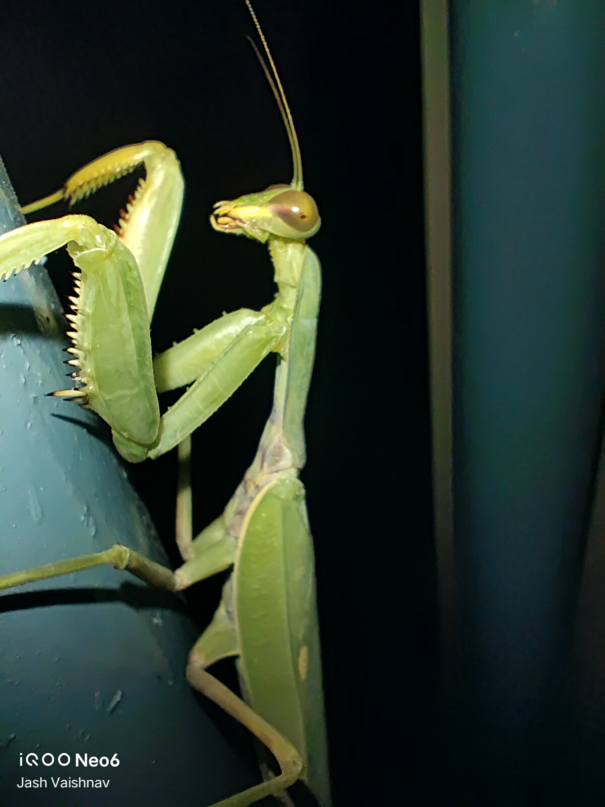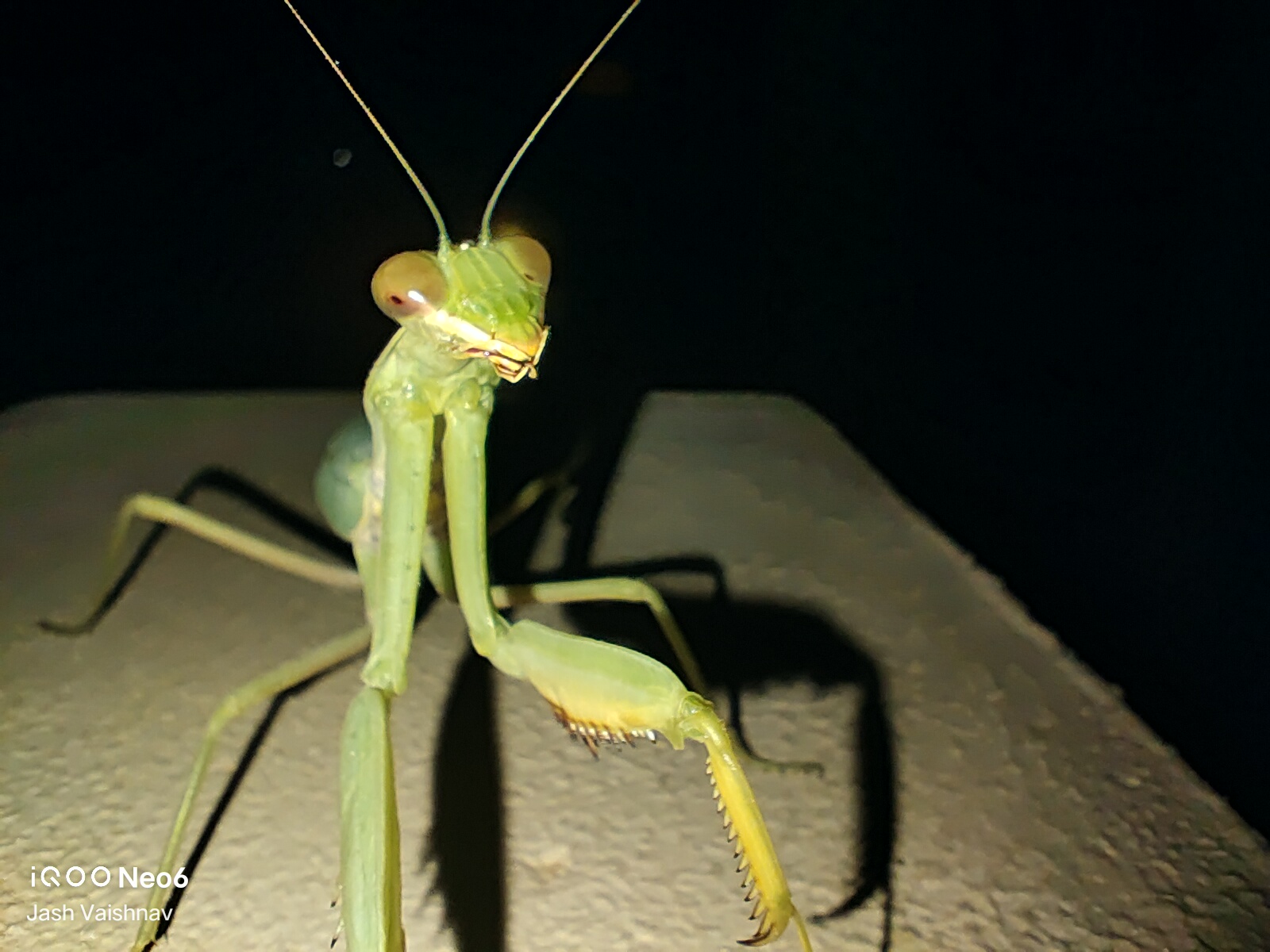 Their famous forelegs are very powerful for their size and can crush its prey in half. Their mouth parts have several strong cutting components to tear and consume through insect exteriors. Praying mantises are able to turn their heads 180° for excellent vision and hearing.