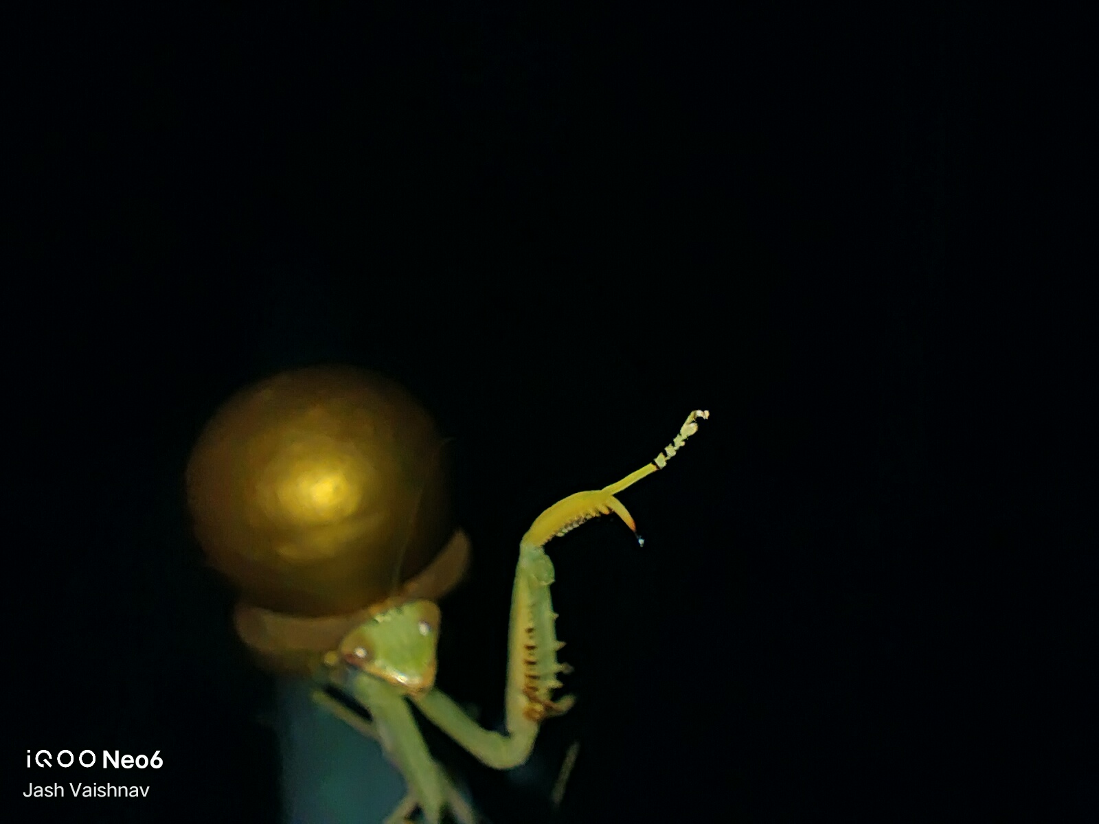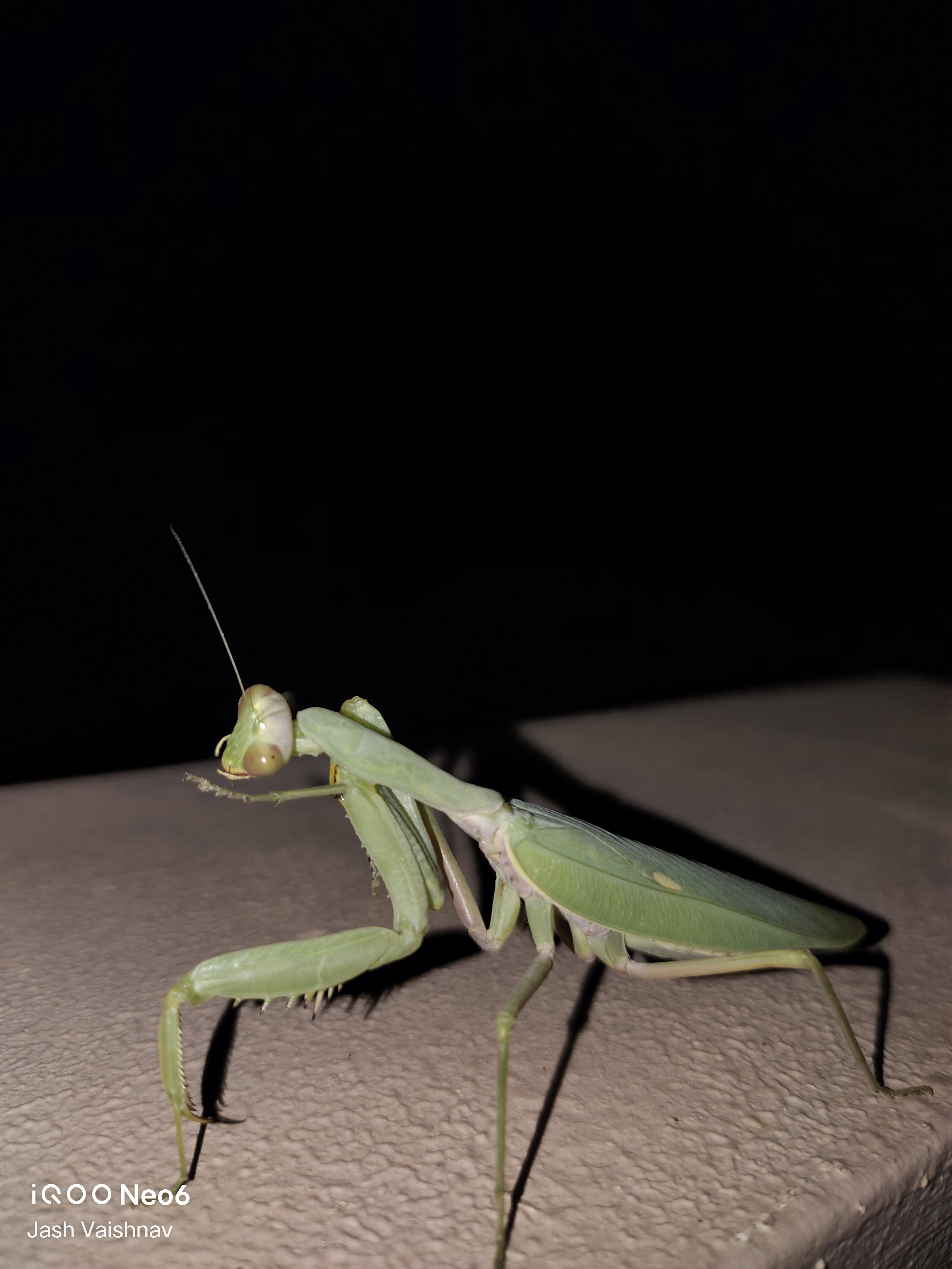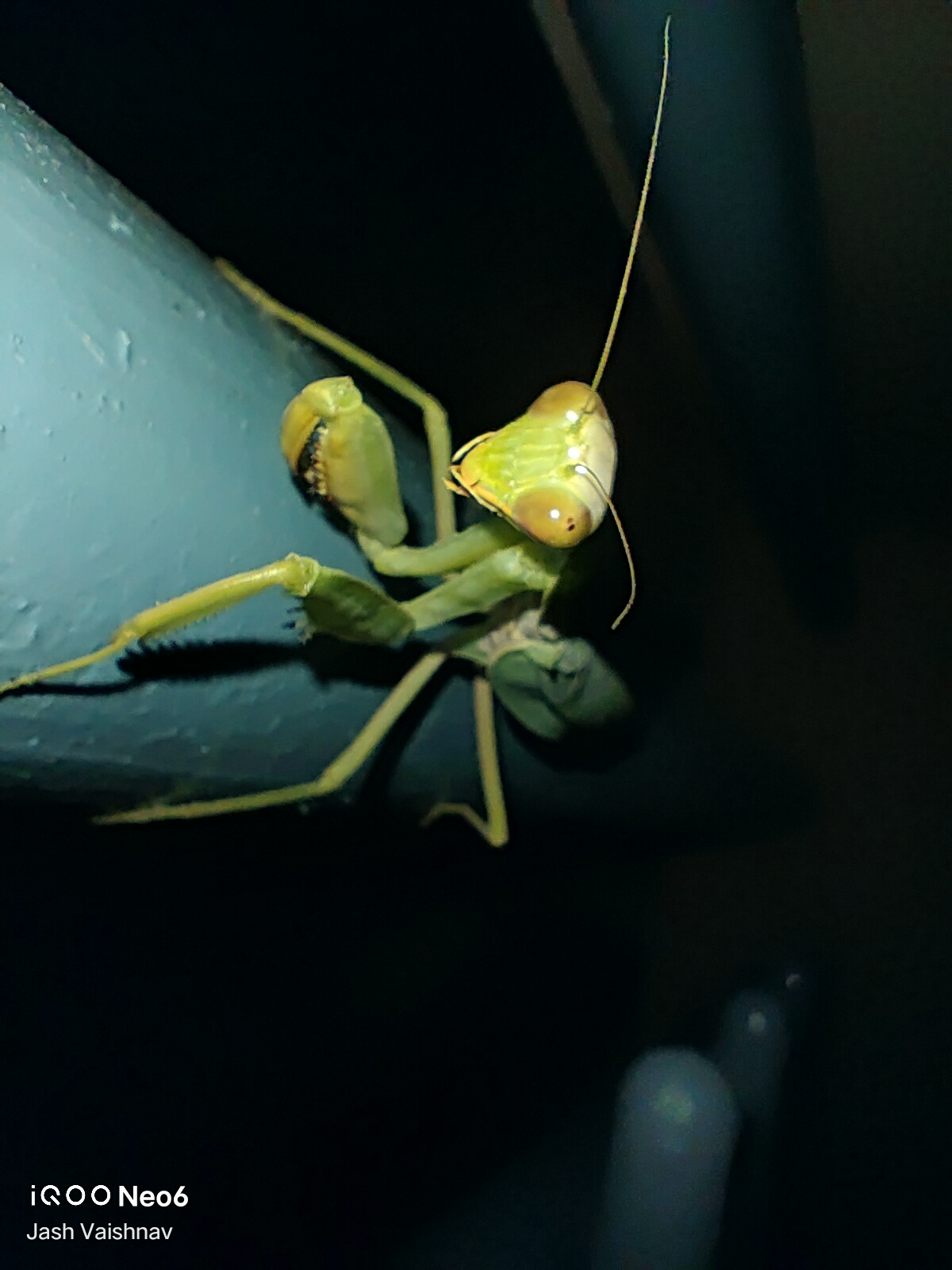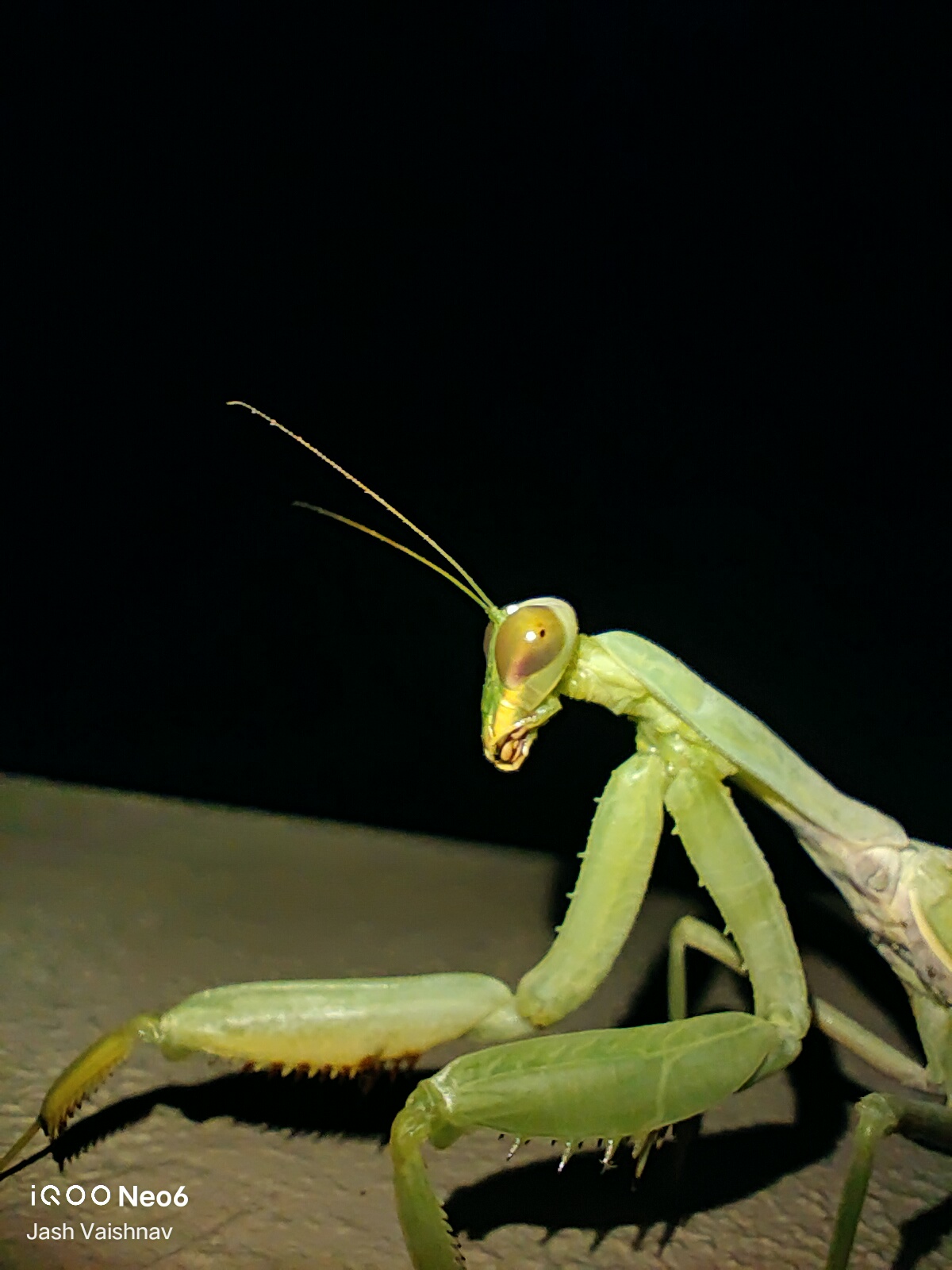 Their famous forelegs are very powerful for their size and can crush its prey in half. Their mouth parts have several strong cutting components to tear and consume through insect exteriors. Praying mantises are able to turn their heads 180° for excellent vision and hearing.