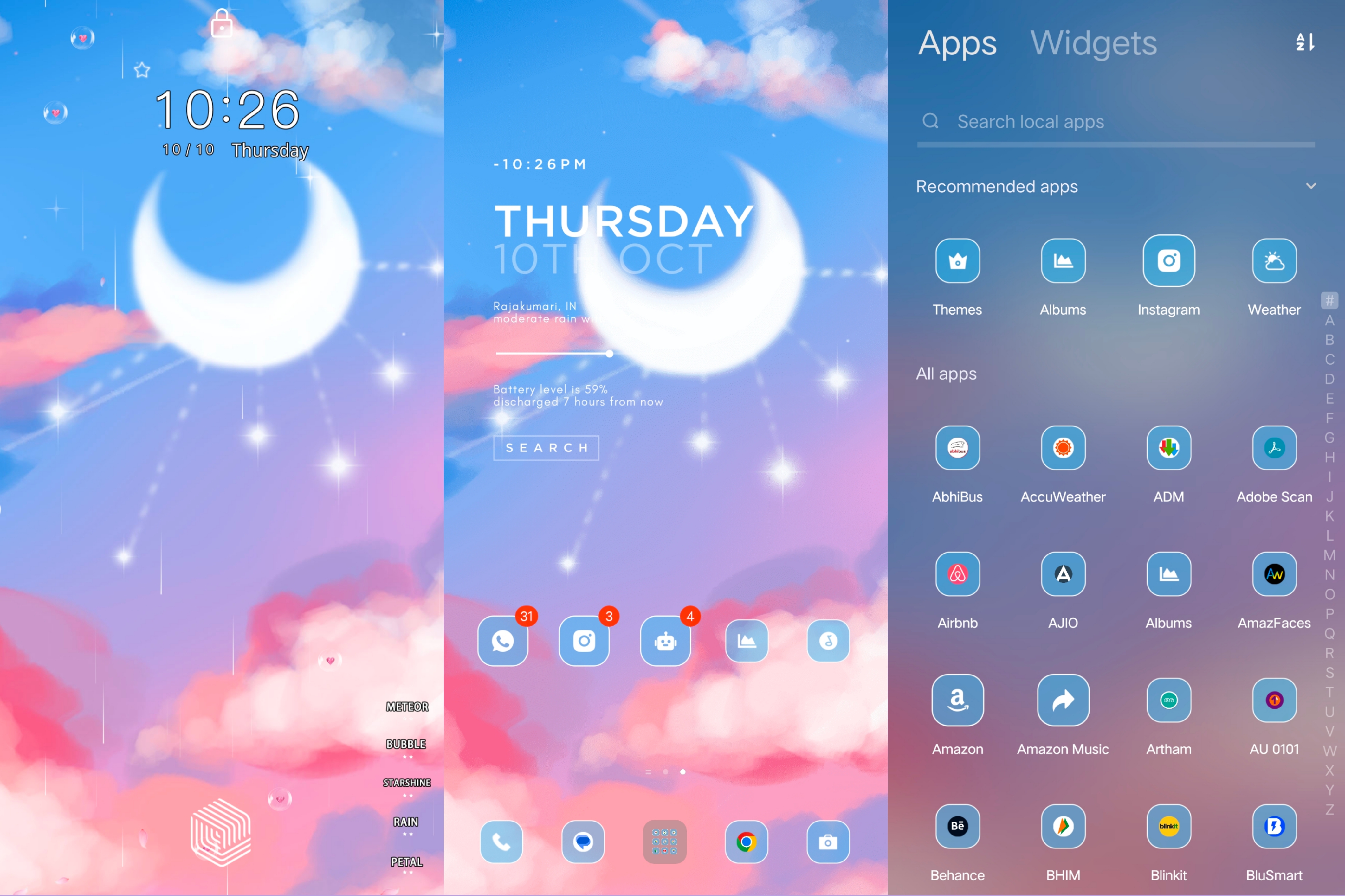 Embrace the calm and serenity of the night with the celestial-inspired theme featuring soft moonlit tones and dreamy starry skies, giving your phone a soothing, otherworldly charm every time you unlock it.