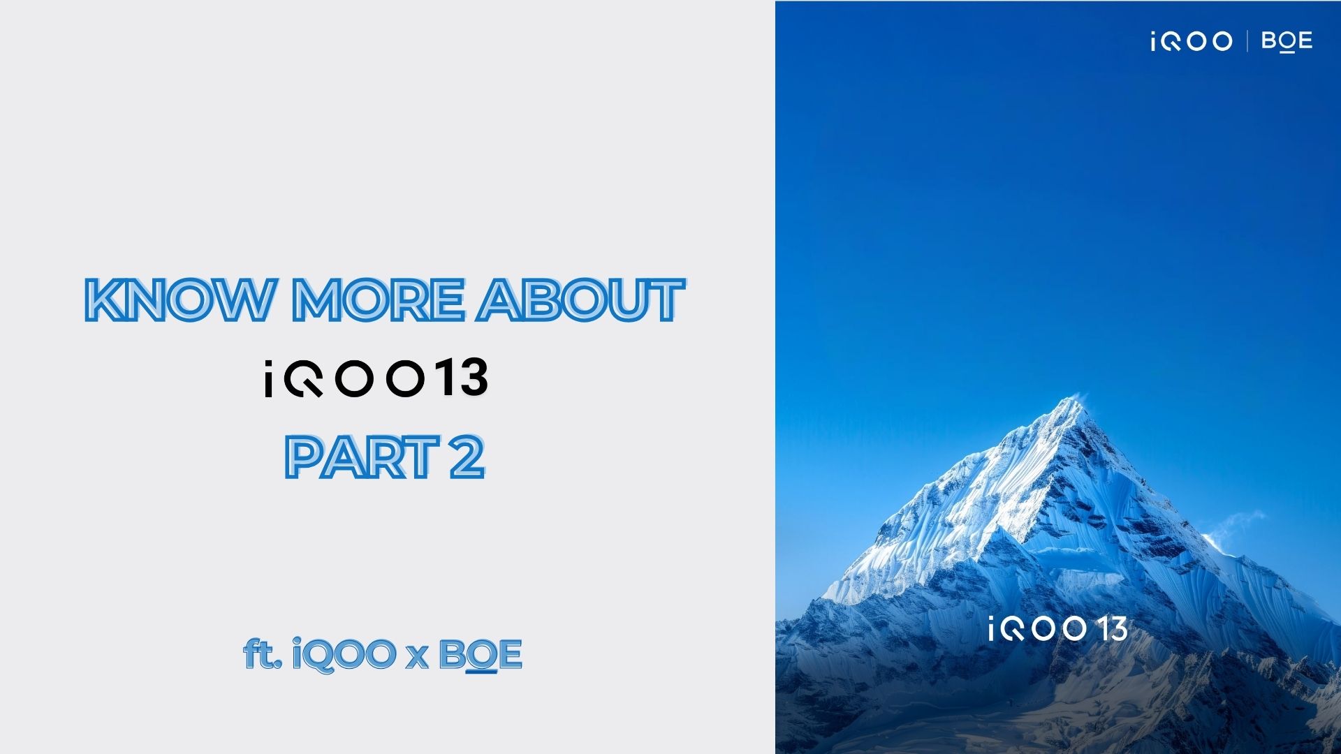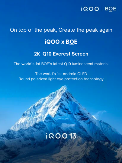 iQOO 13 is doing a Global Debut of BOE's latest 2K Q10 Everest Display for iQOO13; The world's first BOE's latest Q10 luminous material, with comprehensive advances in brightness, color, power consumption and service life compared with the previous generation.