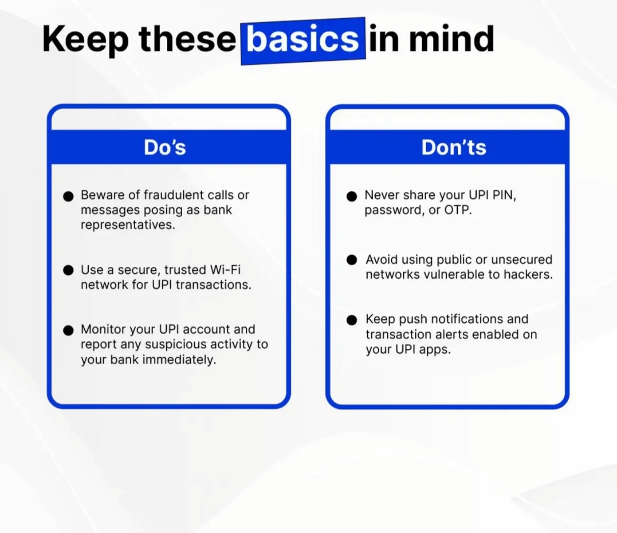 2. Verify before you transact: Double-check UPI IDs, especially when making large payments.