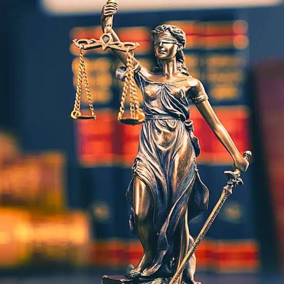 The Black Blindfold on the Goddess of Justice has been removed and the sword in her hand has been replaced with the book of the Constitution. 📙
