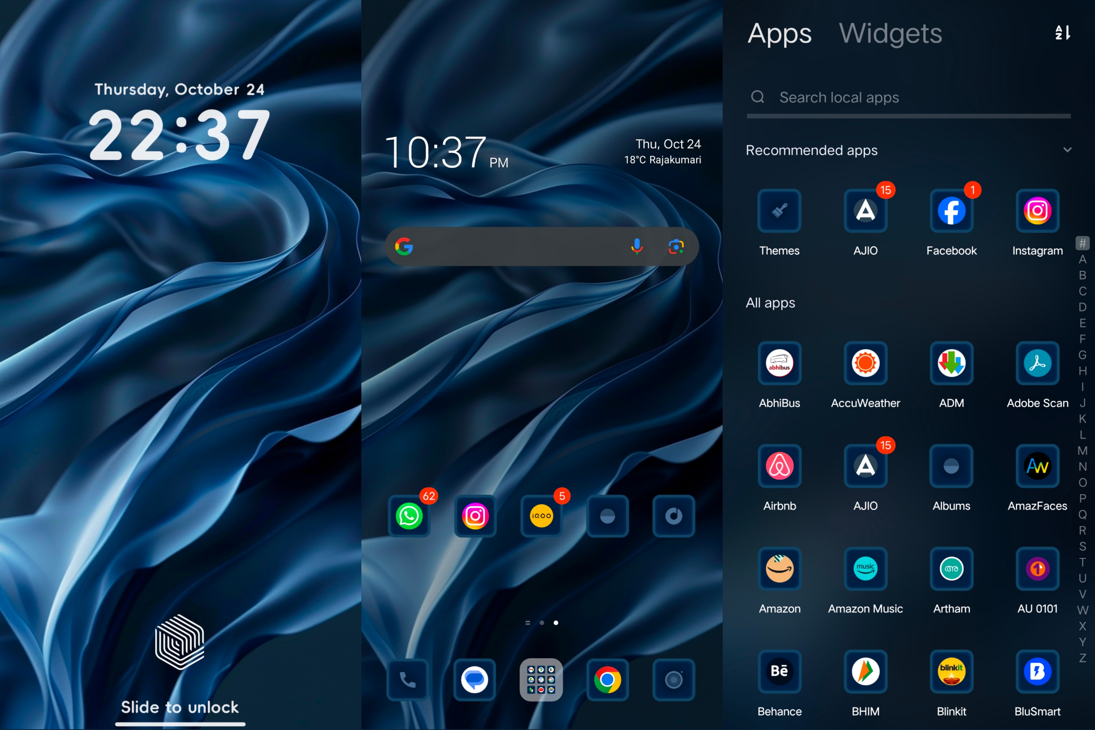 Elevate your device's elegance with a minimalist theme with blue, silk-textured elements; this theme exudes sophistication. Ideal for those who love simplicity and class in every detail.