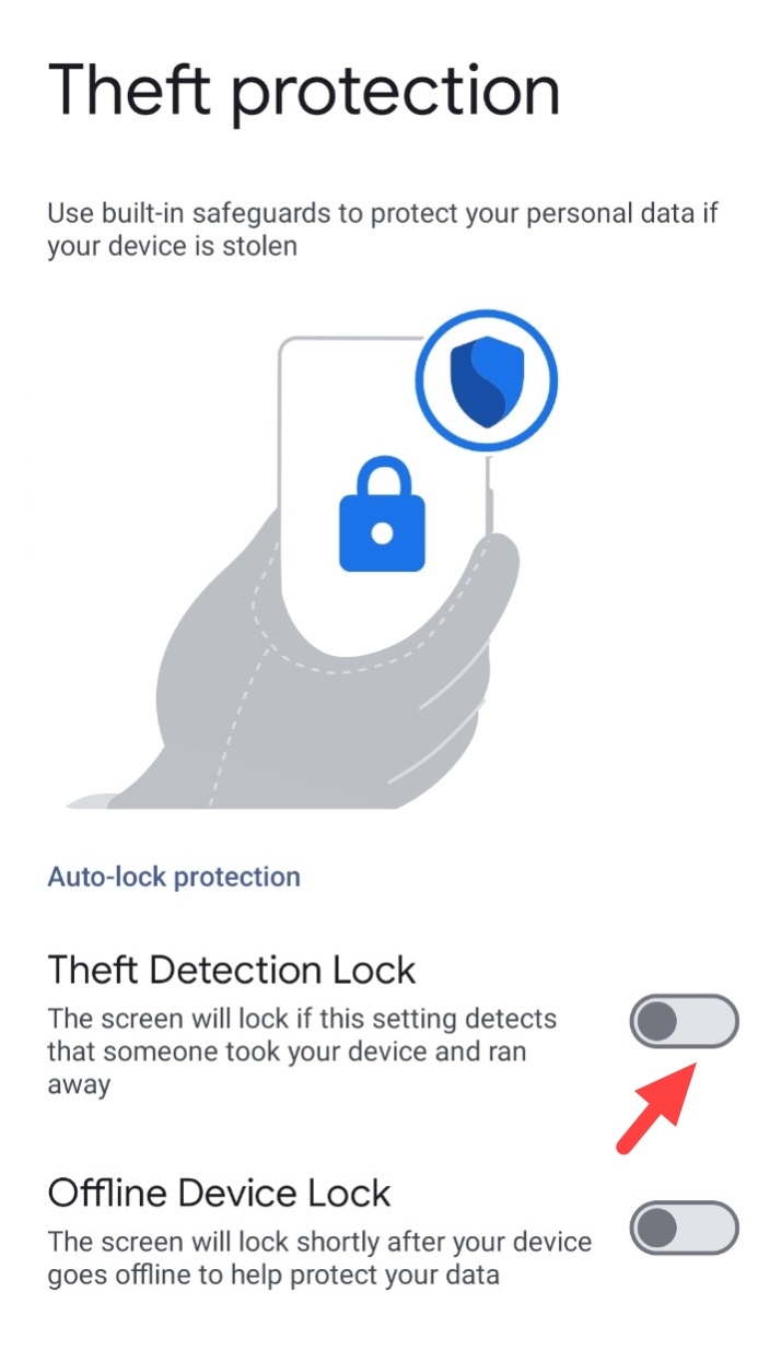 👉5. Confirm your choice by toggling “Theft Detection Lock.”