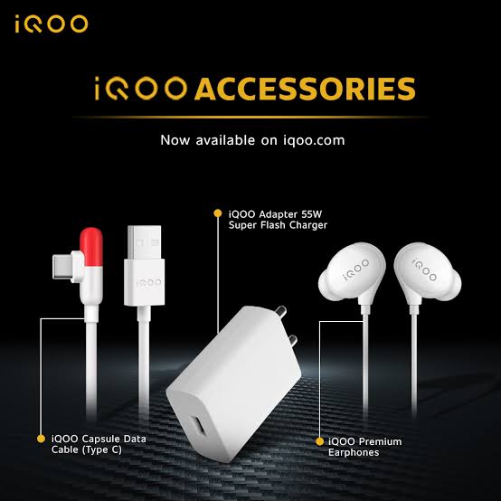iQOO 3 device, 55watt charging brick type C cable, earphone and some documents