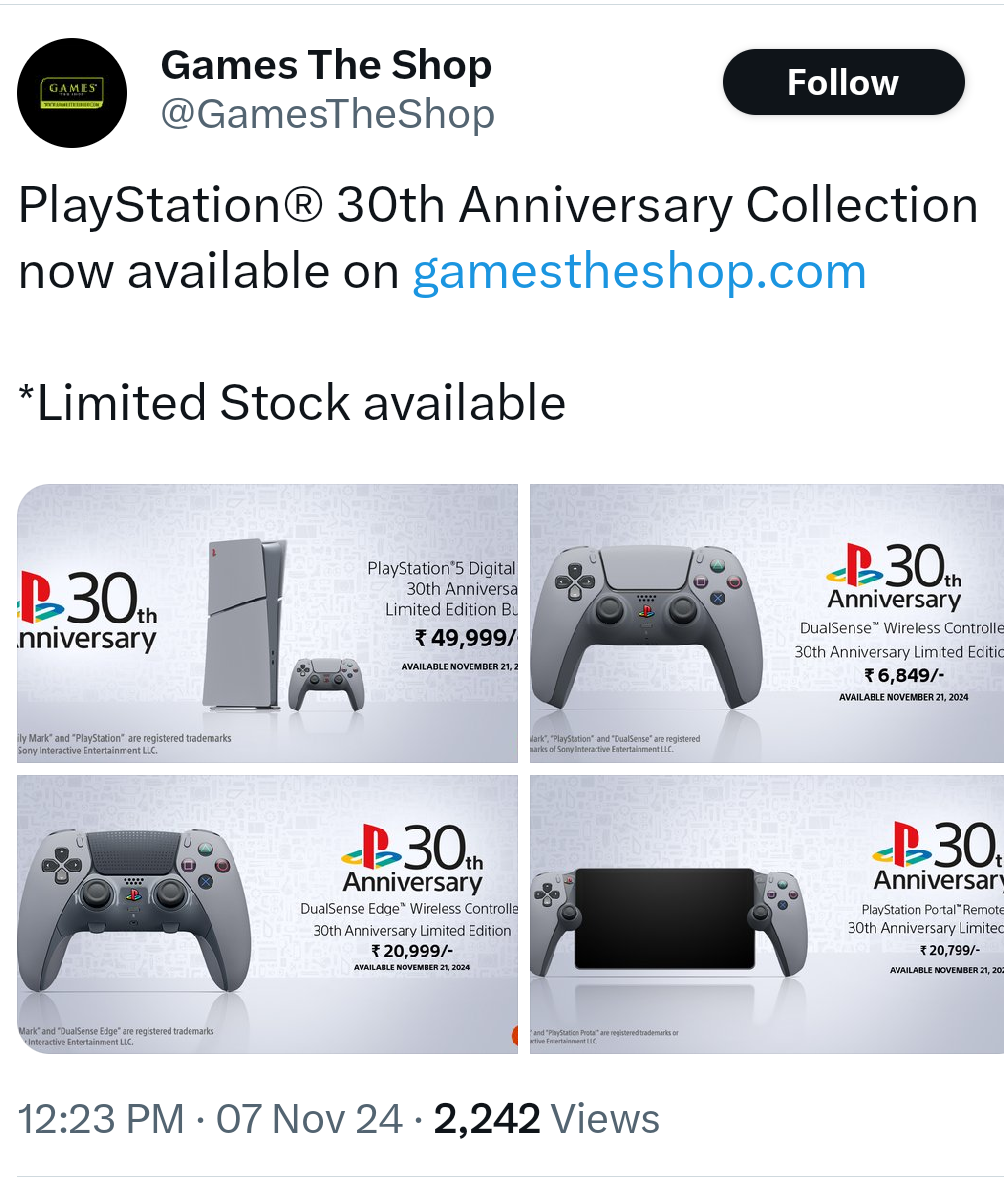 The regular PS5 Slim is Rs 5,000 cheaper than the 30th-anniversary edition, and the same also goes for the Dual Sense controllers and the Portal, where the limited edition models are slightly on the expensive side. Users can now pre-order these products to ensure their availability at launch.