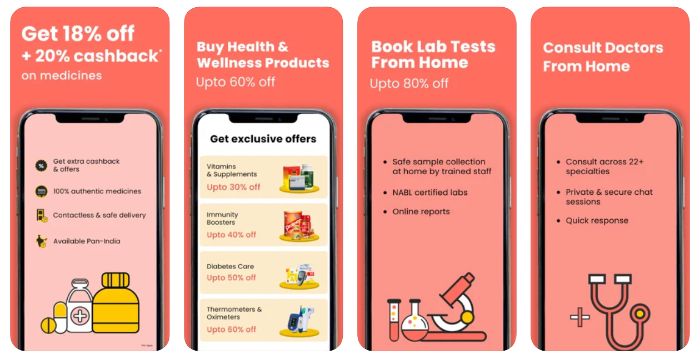 Apollo 24|7 leverages its parent company’s healthcare expertise and extensive offline network. The platform combines medicine delivery with consultations, diagnostics, and wellness products, making it a one-stop solution for healthcare needs.
