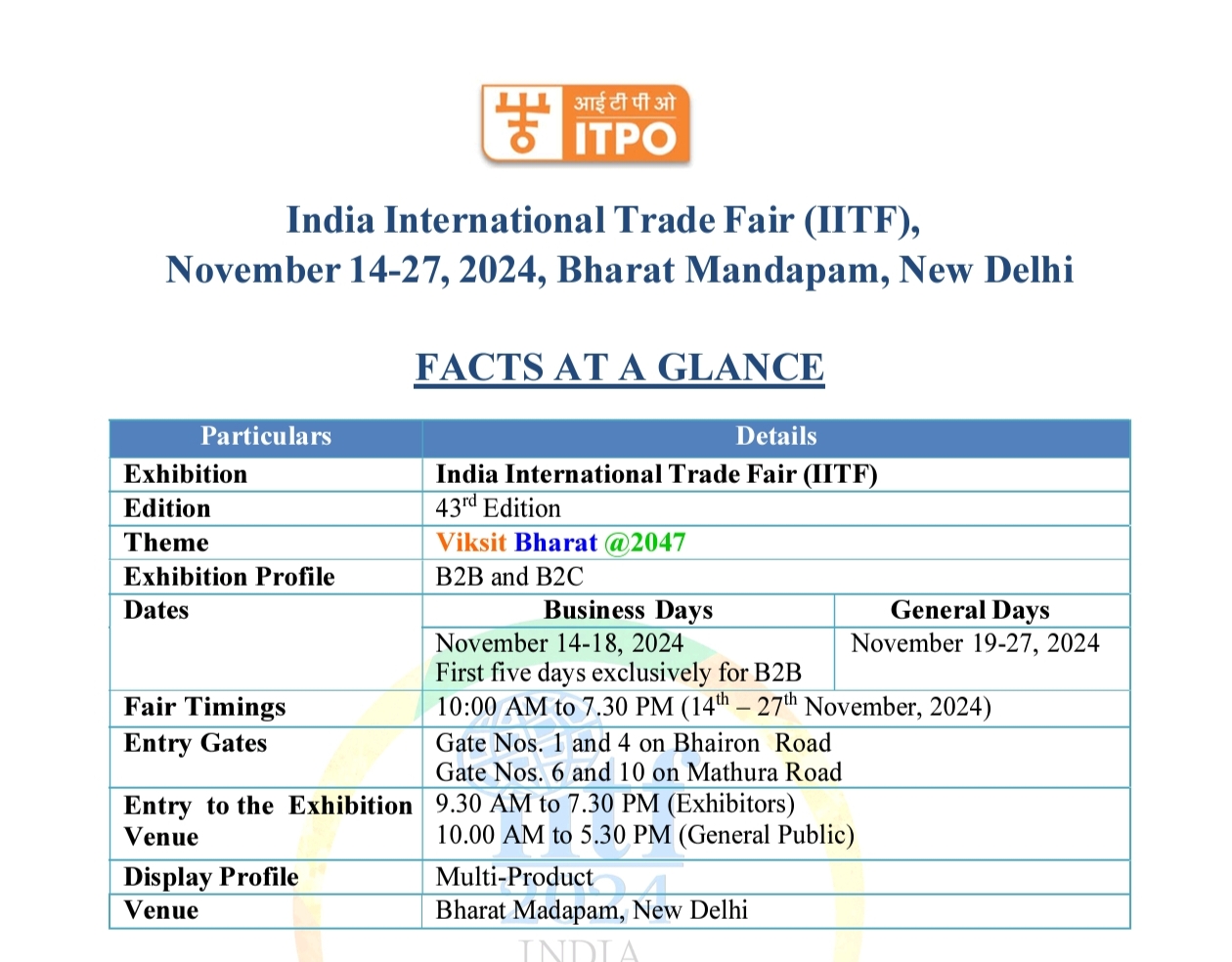 The 43rd edition of the India International Trade Fair (IITF) will begin at Bharat Mandapam in New Delhi today.