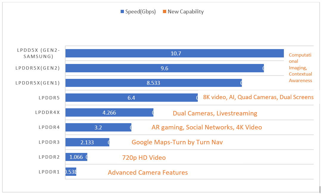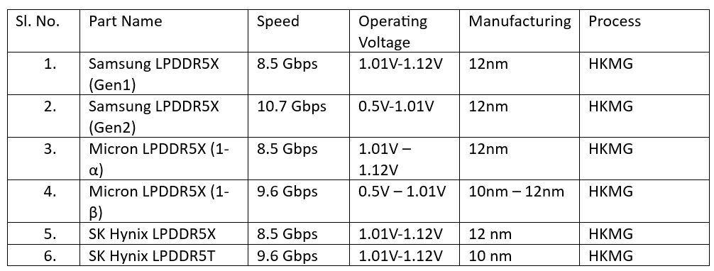 With the 5G revolution an increase in memory bandwidth was imminent to fulfil the huge data required by AI engines, LPDDR5 fulfilled the requirement. The present buzz, superfast on-device AI technology in mobile device is possible only with LPDDR5 tech. below is a list of details on current LPDDR5X RAM technologies by different companies.