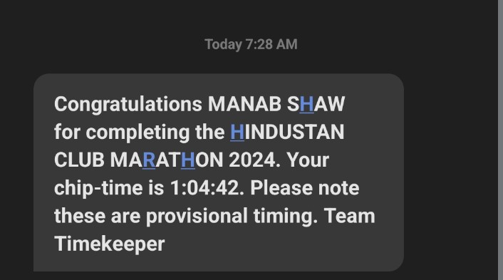 This was my one of the best marathon the organiser Organised it very well with the track , equipment,road safety,health checkup, Time Calculator and many more things. Really it was fun to participate in it and engage with the running member who pushed me to run whenever I stop ...