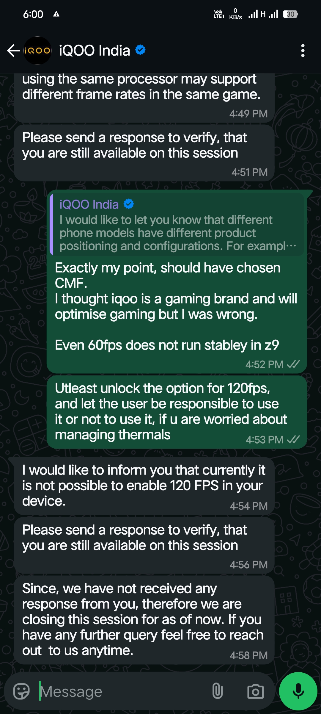 In my conversation with Iqoo, it has been officially confirmed that Iqoo z9 will not be getting 120fps support, not even 90fps support in BGMI.