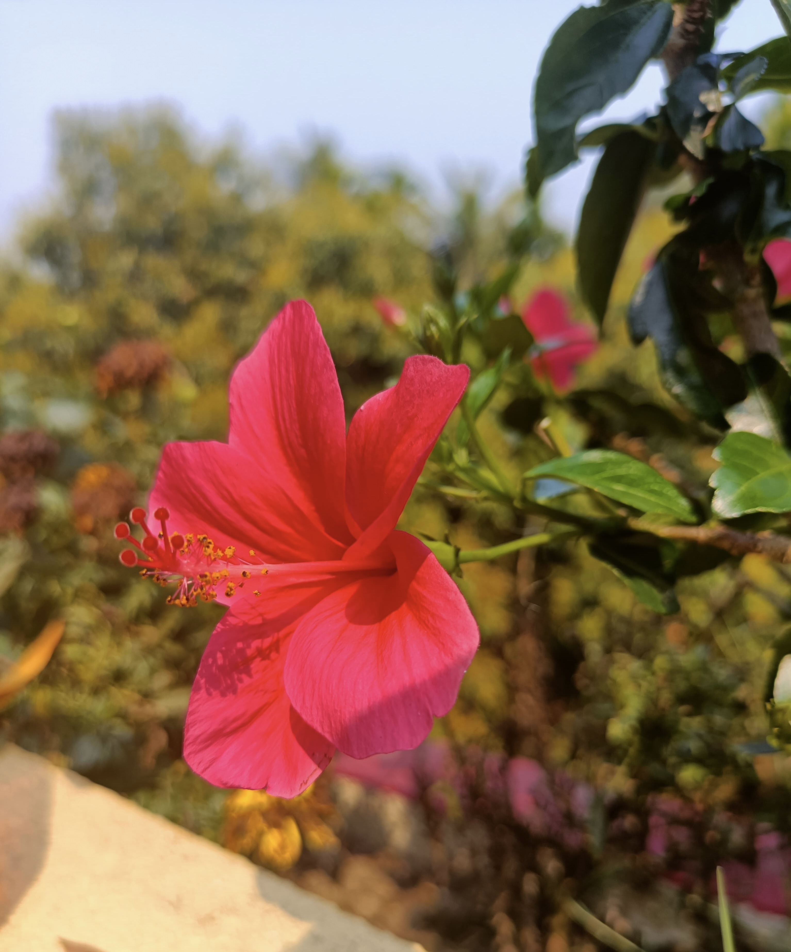Hibiscus × rosa-sinensis, known colloquially as Chinese hibiscus, China rose, Hawaiian hibiscus, rose mallow and shoeblack plant, is a cultigen of tropical hibiscus, a flowering plant in the Hibisceae tribe of the family Malvaceae.