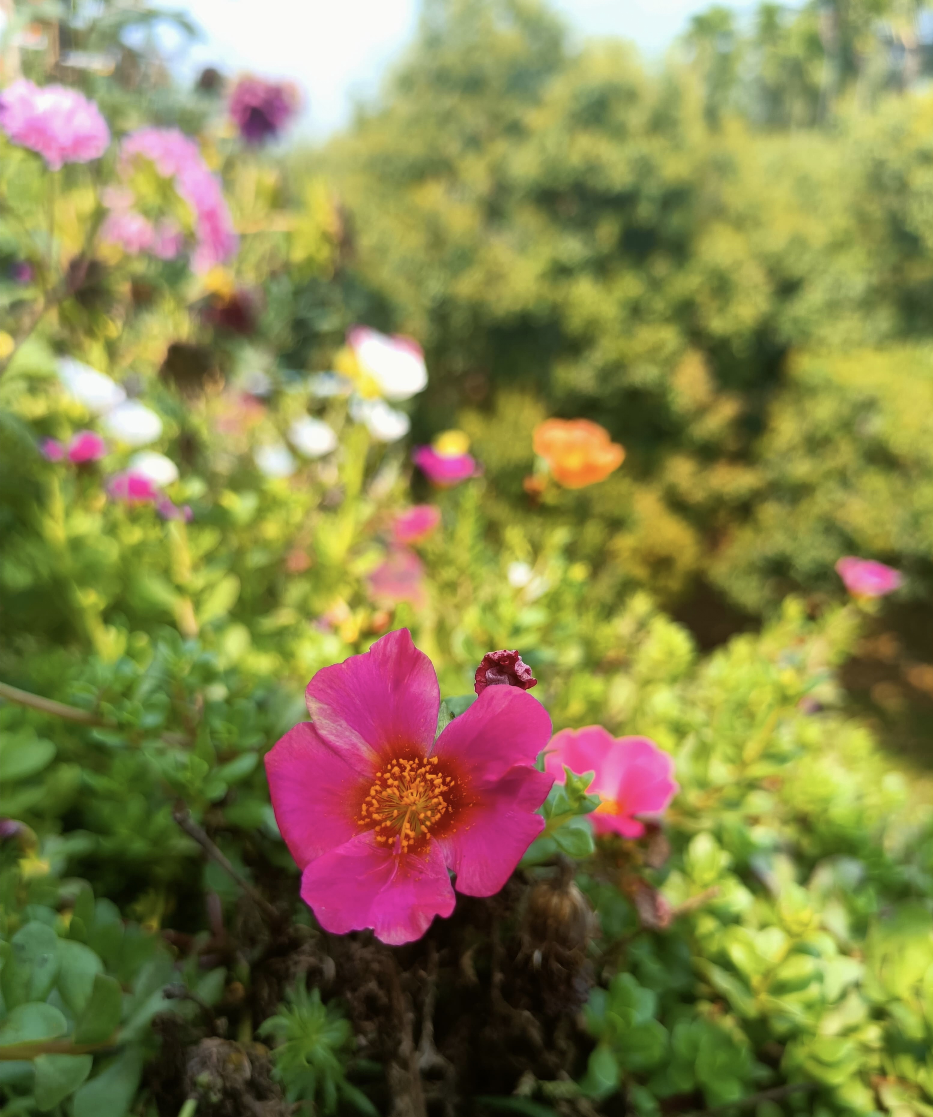 Portulaca grandiflora is a succulent flowering plant in the purslane family Portulacaceae, native to southern Brazil, Argentina, and Uruguay and often cultivated in gardens. It has many common names, including rose moss, eleven o'clock, Mexican rose, moss rose, sun rose, table rose, rock rose, and moss-rose purslane.