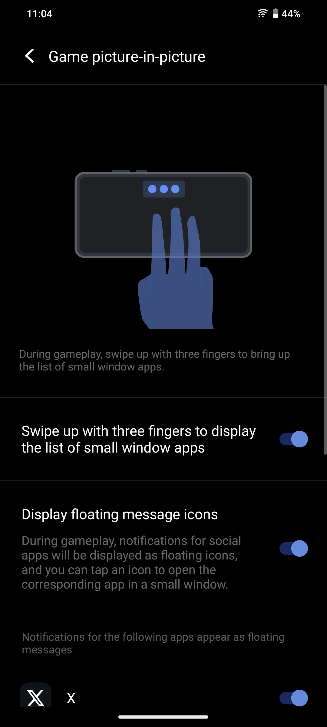 Allows you to open apps like messaging or browsers in a floating window while gaming.
