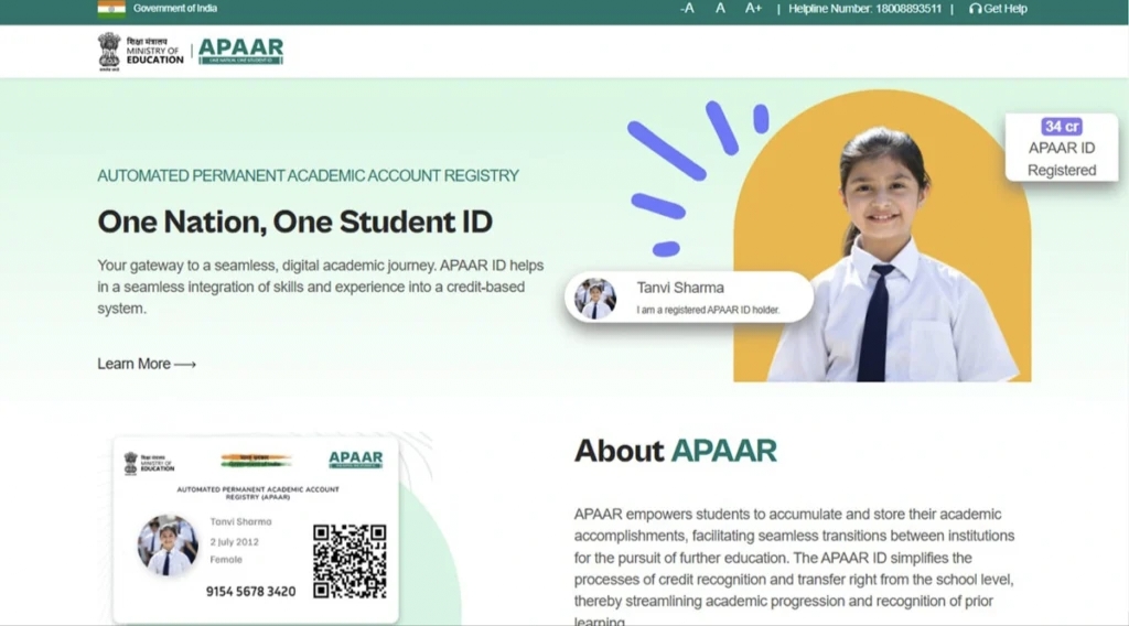 The Automated Permanent Academic Account Registry (APAAR ID) is a unique 12-digit number issued to every student in India, providing them with a lifelong academic identity. It serves as a centralised repository for their educational records, spanning from pre-primary to higher education.