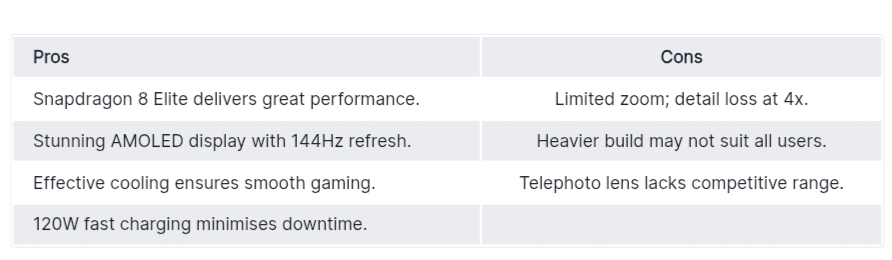 The iQOO 13 is a compelling device that pushes the envelope for performance in the premium segment. With the Snapdragon 8 Elite chipset at its core, it’s a dream for gamers and power users alike. The display, camera, and battery performance collectively make it a strong contender in its price range.